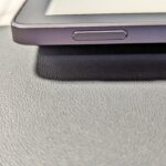 Il retro del dispositivo è in metallo, come il resto dello chassis, con una parte satinata e una più liscia, bellissima da vedere e utile a migliorare il grip. Nella parte superiore troviamo il pulsante di accensione, nel caso non vogliate utilizzare la cover. Quest’ultima è in grado di accendere e spegnere lo schermo alla chiusura. Sul lato destro trova posto la porta USB Type-C per la ricarica e il collegamento al computer, e la cover è sagomata in modo da lasciarla sempre raggiungibile, per proteggere lo schermo anche durante la carica.