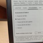 A seguire è possibile scegliere cosa visualizzare nella parte inferiore dello schermo, con la possibilità di vedere la posizione nel libro, il numero di pagina, il tempo rimanente alla fine del capitolo, il tempo rimanente alla fine del libro o nessuna informazione. L’ultima scheda permette di salvare le impostazioni un nuovo tema, da riutilizzare in seguito, e di decidere quali temi mostrare.