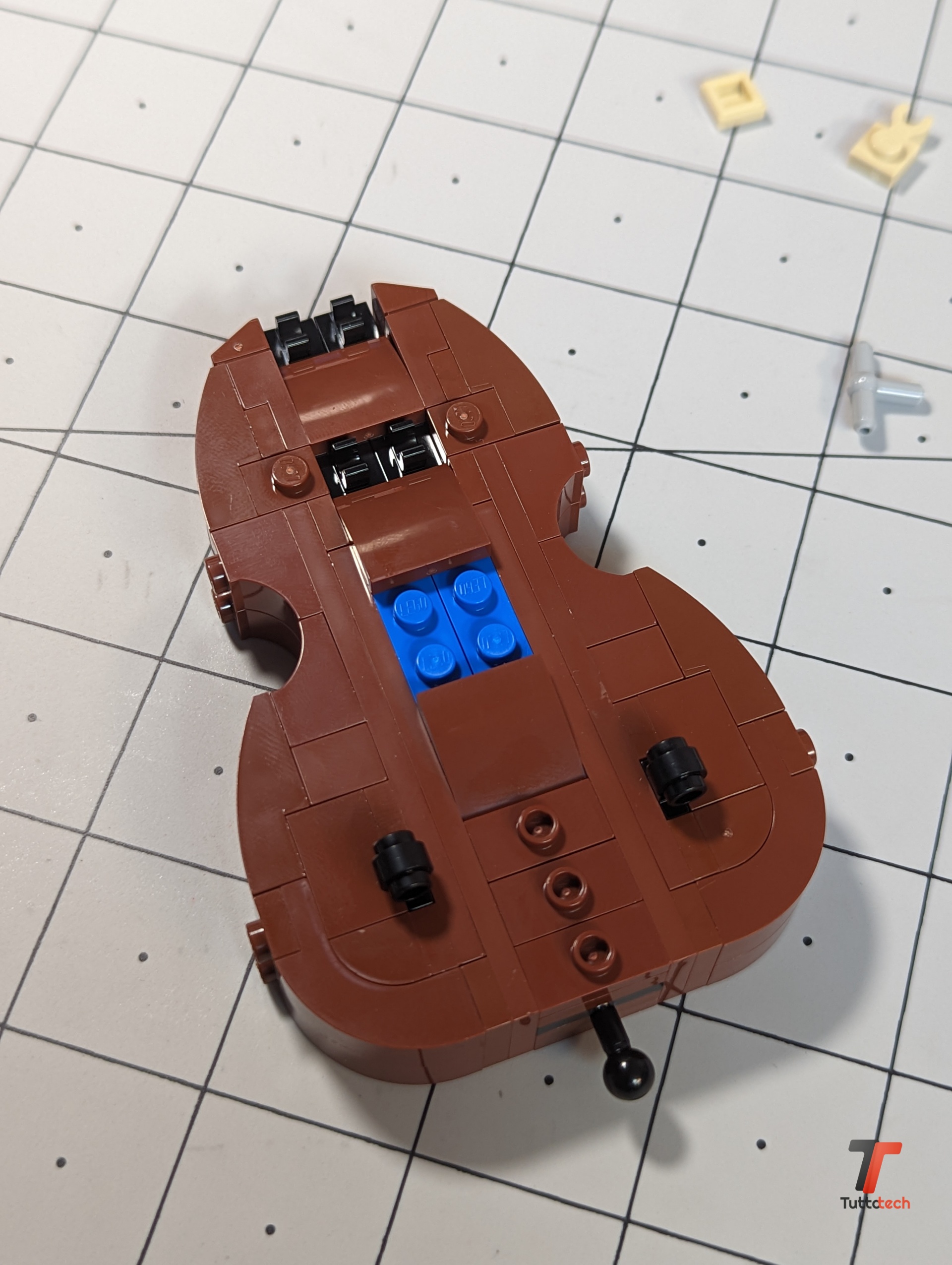 Non ci sono sfide particolarmente complesse, tanto che metà del set è stato assemblato da mio figlio di dieci anni, ma gli ingegneri LEGO hanno utilizzato numerose soluzioni creative per riprodurre sia gli strumenti che i vari personaggi. Personalmente non ho seguito l’ordine dei sacchetti numerati, anche perché ho diviso equamente a metà i compiti col mio fidato aiutante e ho realizzato il contrabbassista e la pianista, lasciando a lui trombettista e batterista.