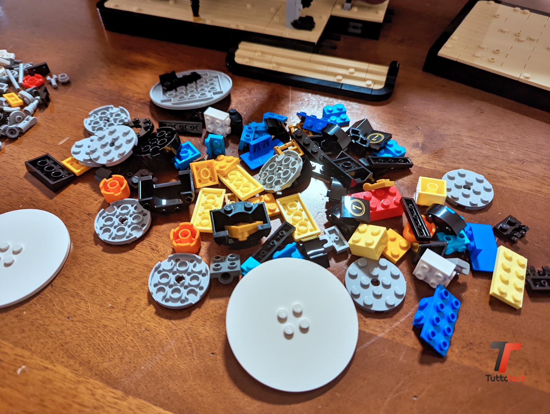 I quattro elementi si fissano tra di loro con alcuni elementi Technic, anche il set può essere diviso in due, anche per semplificare gli spostamenti, semplicemente sfilando gli elementi centrali. Certo, dovrete prestare attenzione quando lo muovete o spostate gli elementi, alcuni dettagli potrebbero staccarsi abbastanza facilmente, ma trattandosi di un set da esposizione e non da gioco ci sta sicuramente.