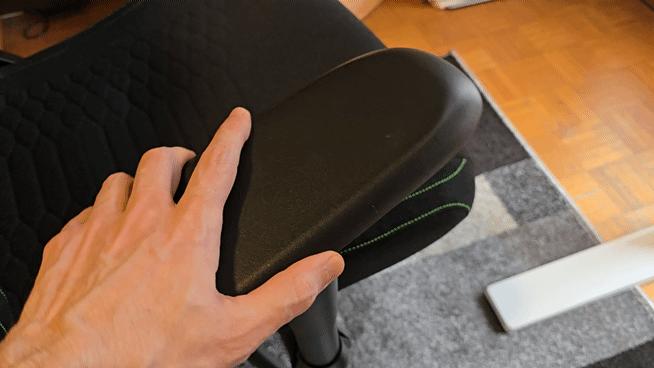 La Razer Iskur V2 X è dotata di braccioli 2D che possono essere regolati verticalmente e ruotati verso l’interno o verso l’esterno. Una buona soluzione, anche se naturalmente la sorella maggiore si spinge oltre con i braccioli 4D (regolabili anche in avanti/indietro e a sinistra/destra). Tendono ad avere un po’ di “gioco” durante il movimento della braccia, e si spostano forse troppo facilmente (questione piuttosto “comune” con le tipologie di regolazione offerte, anche su fasce di prezzo superiori), ma sono comunque comodi e sufficientemente morbidi. Purtroppo niente da fare per il poggiatesta in memory foam, che non risulta incluso: se lo volete dovete acquistarlo separatamente (sul sito c’è anche la versione Chroma con LED RGB), ma del resto era prevedibile considerando il listino inferiore.