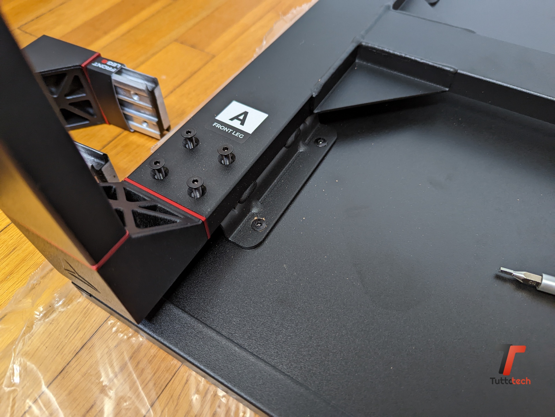 L’assemblaggio è decisamente semplice, con le istruzioni molto chiare e tutte le parti necessarie organizzate in maniera meticolosa, attrezzi inclusi. Secretlab consiglia di effettuare il montaggio in due ma nella realtà dei fatti la procedura può essere fatta senza problemi anche da una sola persona. Solo la parte finale, il capovolgimento della scrivania, richiede un aiuto per evitare di rovinare gli spigoli o di graffiare le gambe del tavolo.