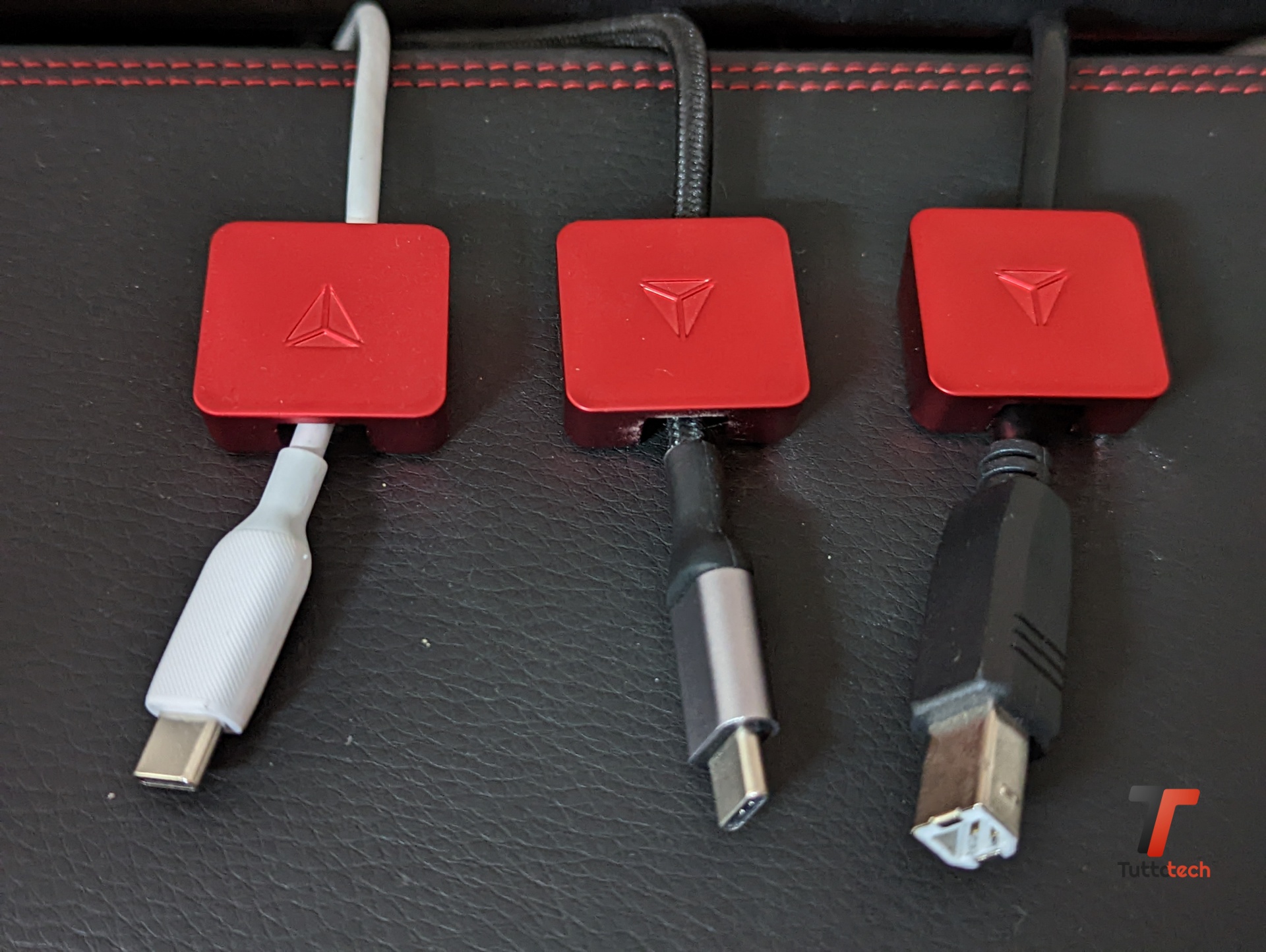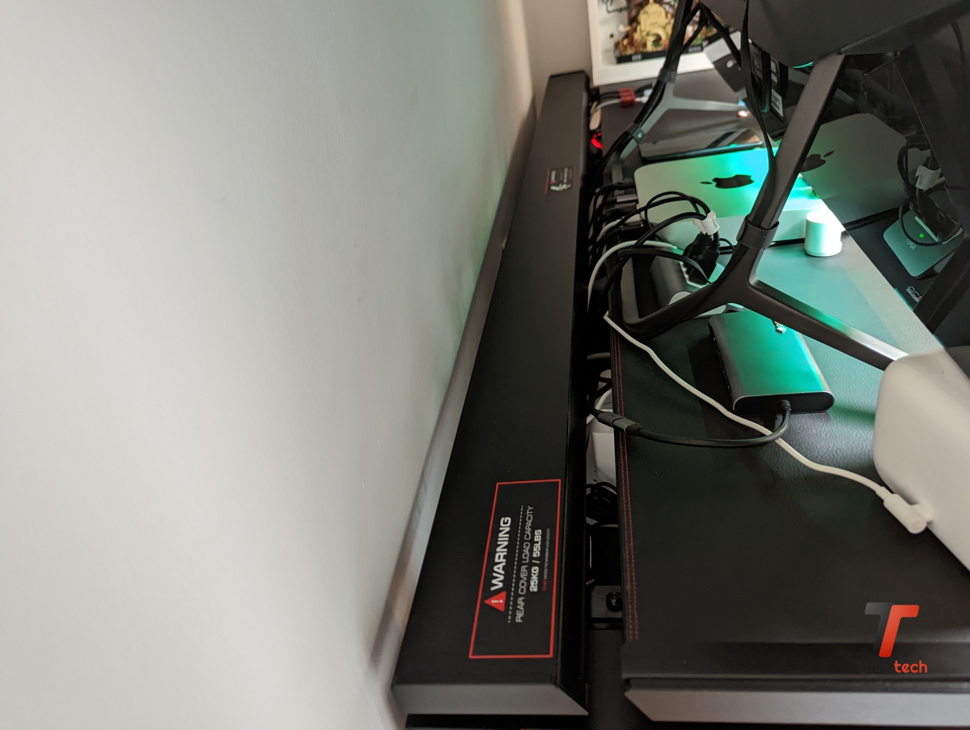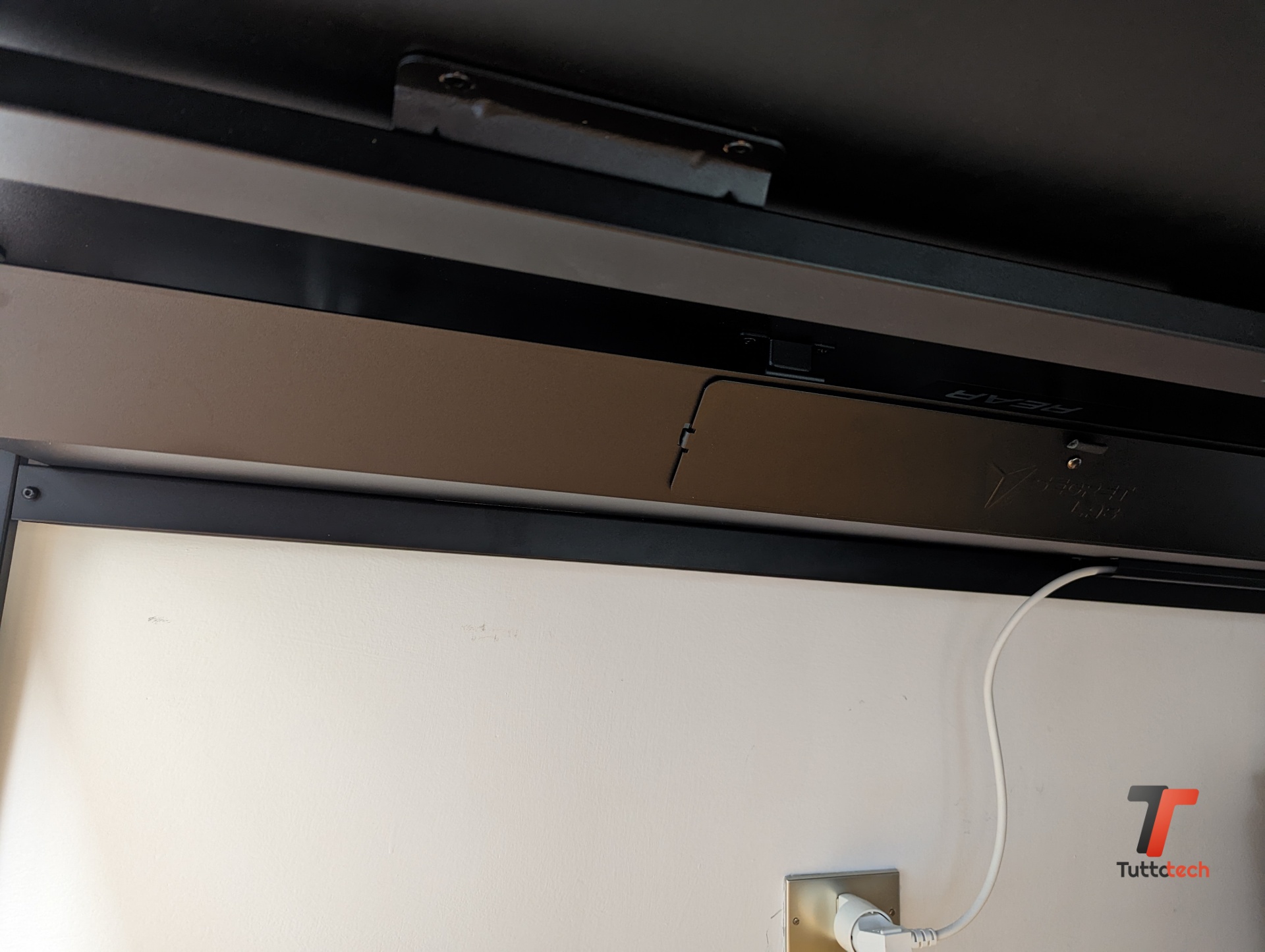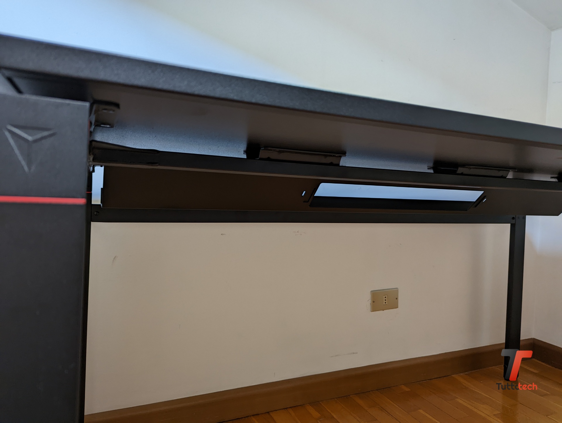 I tre magneti (nella versione Stealth abbinata al mio tappetino sono di colore rosso) sono davvero molto utili e permettono di tenere i classici cavetti USB di ricarica al loro posto, senza che siano sparsi per la scrivania. Molto comodi anche i due schermi in lamiera per nascondere i cavi che dalla presa di corrente salgono fino al vano dove nascondere le multiprese e i vari cavi: in questo modo anche la parte inferiore della scrivania è davvero ordinato e pulito, semplificando anche le pulizie e la manutenzione.
