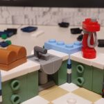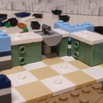La costruzione prosegue poi con le fondamenta della casa e la costruzione dei tre ambienti che caratterizzano il piano terra della costruzione. Il pavimento della cucina, il lavello, il caminetto con i ceppi accesi, i mobili della cucina, sono tutti chiari esempi di quanto LEGO curi in maniera maniacale tutto all’interno del proprio set. In questa fase scopriamo anche il personaggio femminile, con una vistosa acconciatura e un look comodo.