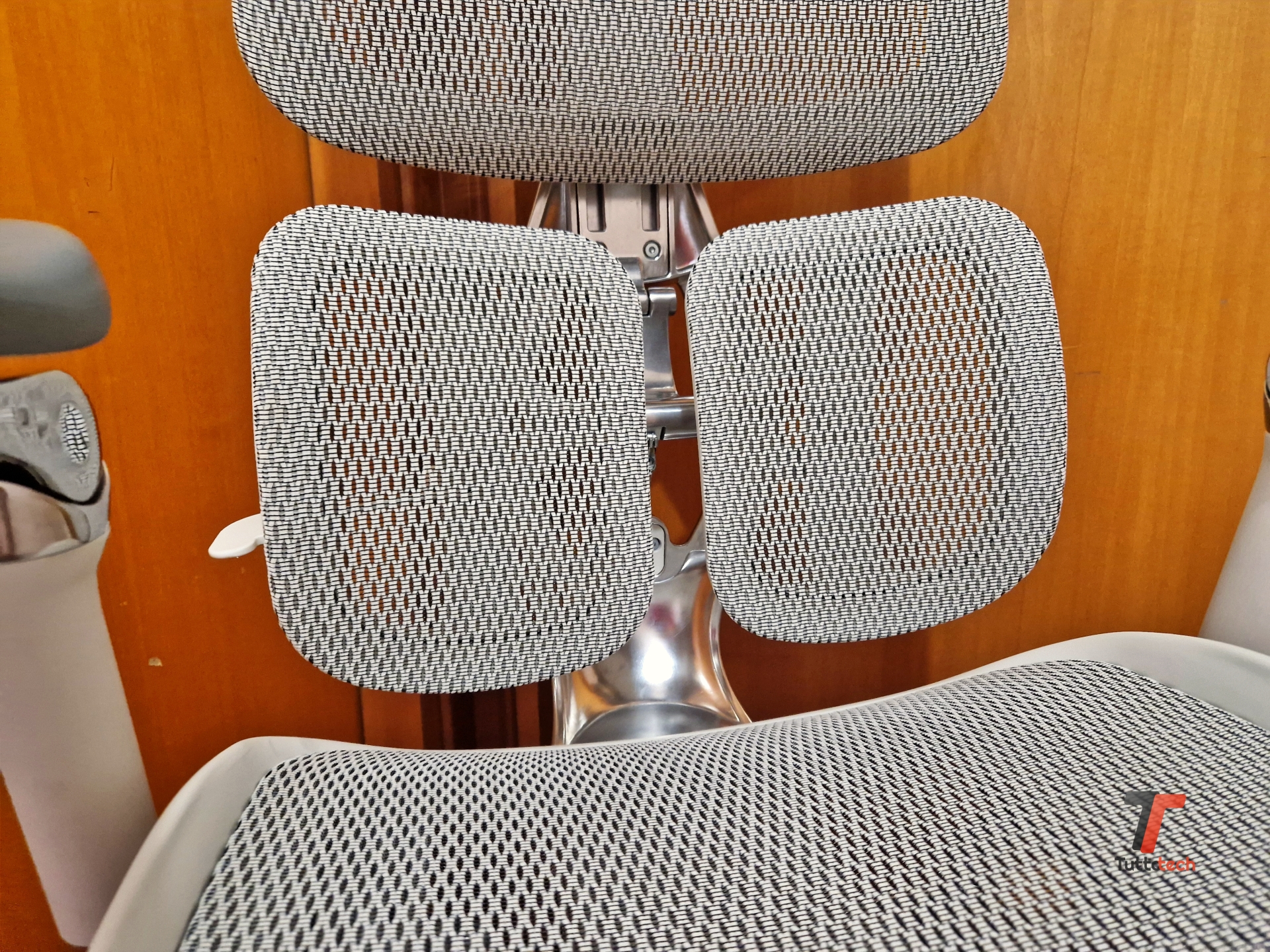 E le due metà del supporto lasciano libera la colonna vertebrale, senza creare quindi alcun tipo di fastidio, fornendo il supporto alla fascia muscolare per il massimo confort. Il supporto rimane perfetto anche reclinando lo schienale e offre un sostegno senza eguali anche quando si raggiunge la posizione più bassa, permettendo di scaricare molto il peso e rilassare la muscolatura, visto che la schiena rimane sempre perfettamente sorretta.