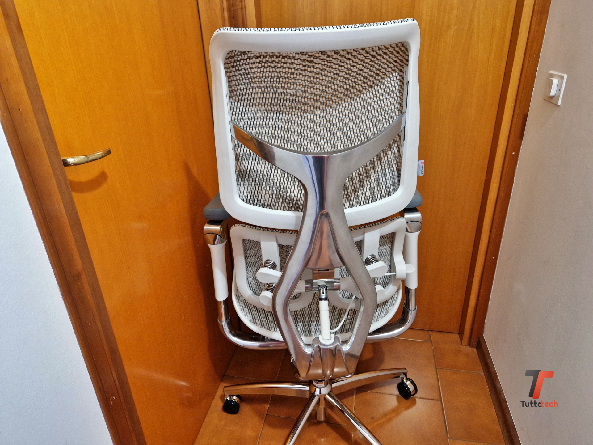 Invece di un vero e proprio poggiatesta, che in molti casi porta a posizioni fastidiose, la soluzione di Sihoo è quella di sagomare lo schienale che risulta leggermente curvato verso la parte anteriore, così da offrire un supporto morbido e comodo, soprattutto quando tutta la schiena è perfettamente aderente allo schienale.