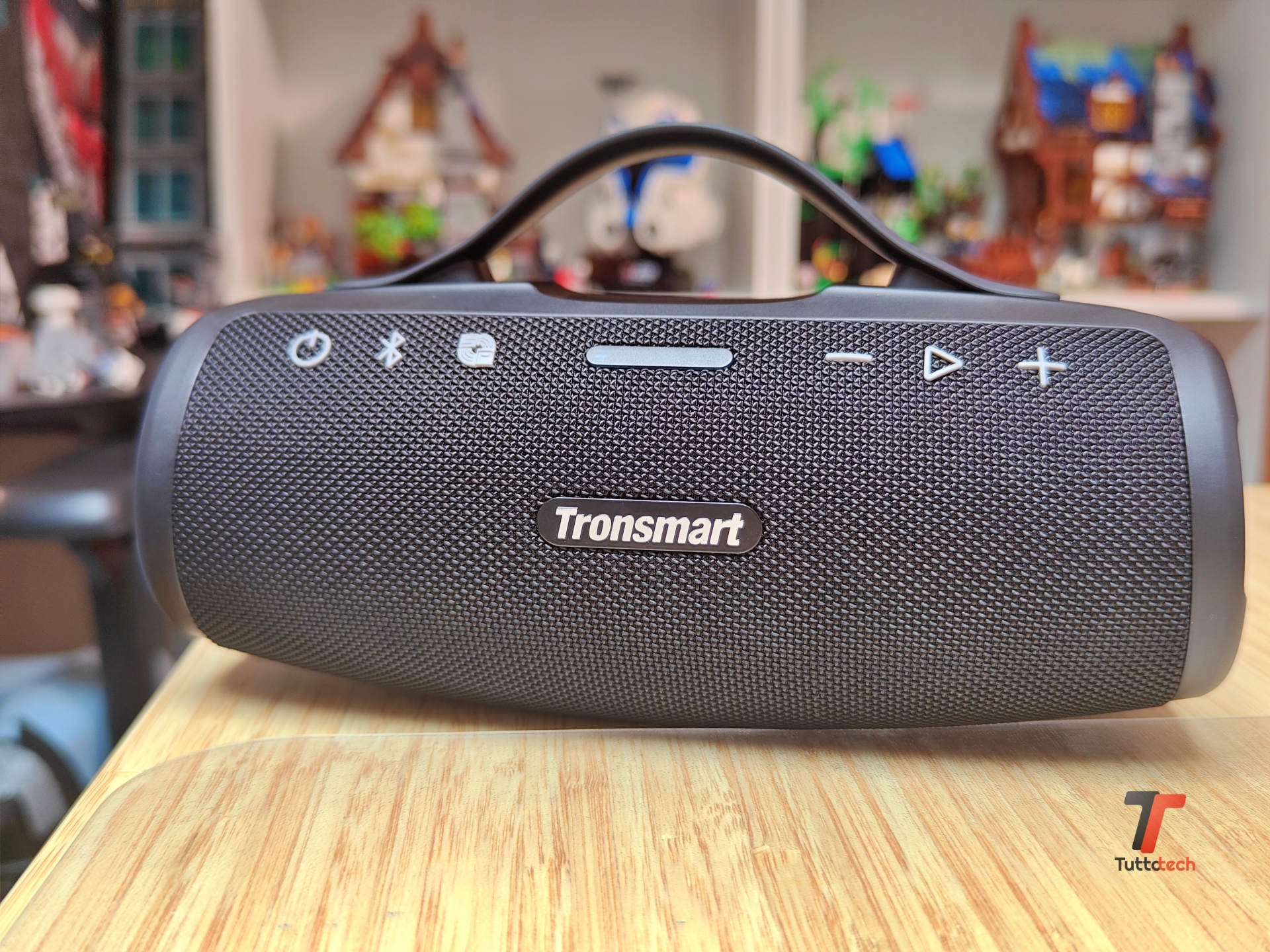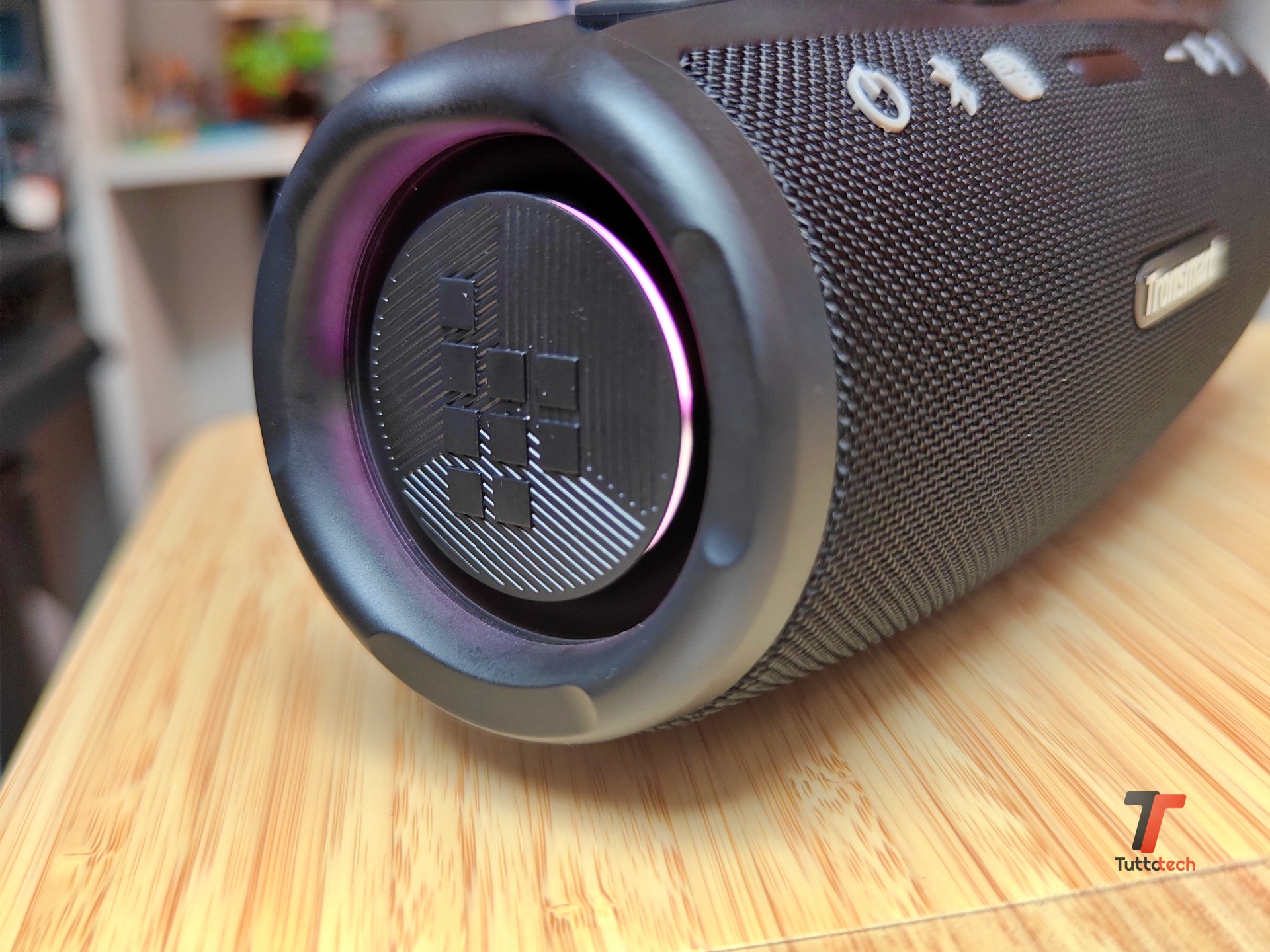 Collegando lo speaker a un dispositivo Android o iOS sul quale è installata l’app Tronsmart, potete accedere a un equalizzatore che consente di regolare il suono a seconda dei propri gusti. È inoltre possibile attivare le luci, inserite negli elementi laterali, facendole pulsare a ritmo di musica, per dare un tocco unico alle vostre feste.