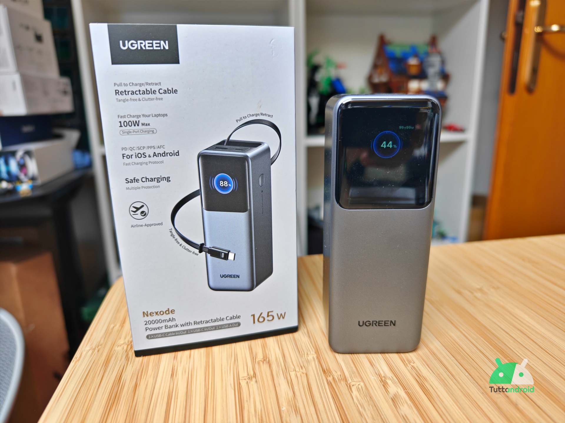 Un risultato eccezionale per ricaricare contemporaneamente e a velocità elevatissima un paio di dispositivi. Anche la ricarica della batteria interna raggiunge i 100 watt, permettendo un “pieno” in poco meno di due ore. Per accertare questo dato, abbiamo collegato il power bank a un caricabatterie UGREEN da 500 watt (qui trovi la recensione), ma si comporta egregiamente anche con il caricabatterie da 65 watt di cui abbiamo parlato poc’anzi, sebbene i tempi di ricarica si allunghino leggermente.