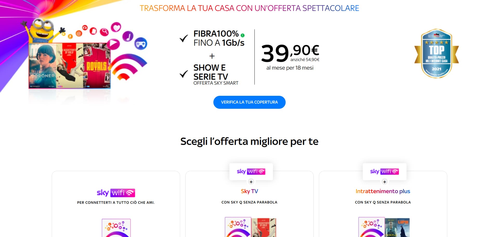 Di seguito l’elenco di offerte basate sul servizio di rete a banda ultralarga Sky Wifi: