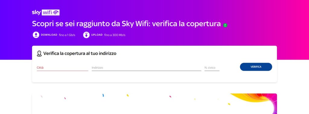 Per verificare la copertura di Sky Wifi, è sufficiente utilizzare lo strumento messo a disposizione da Sky sulla pagina dedicata al servizio in questione.