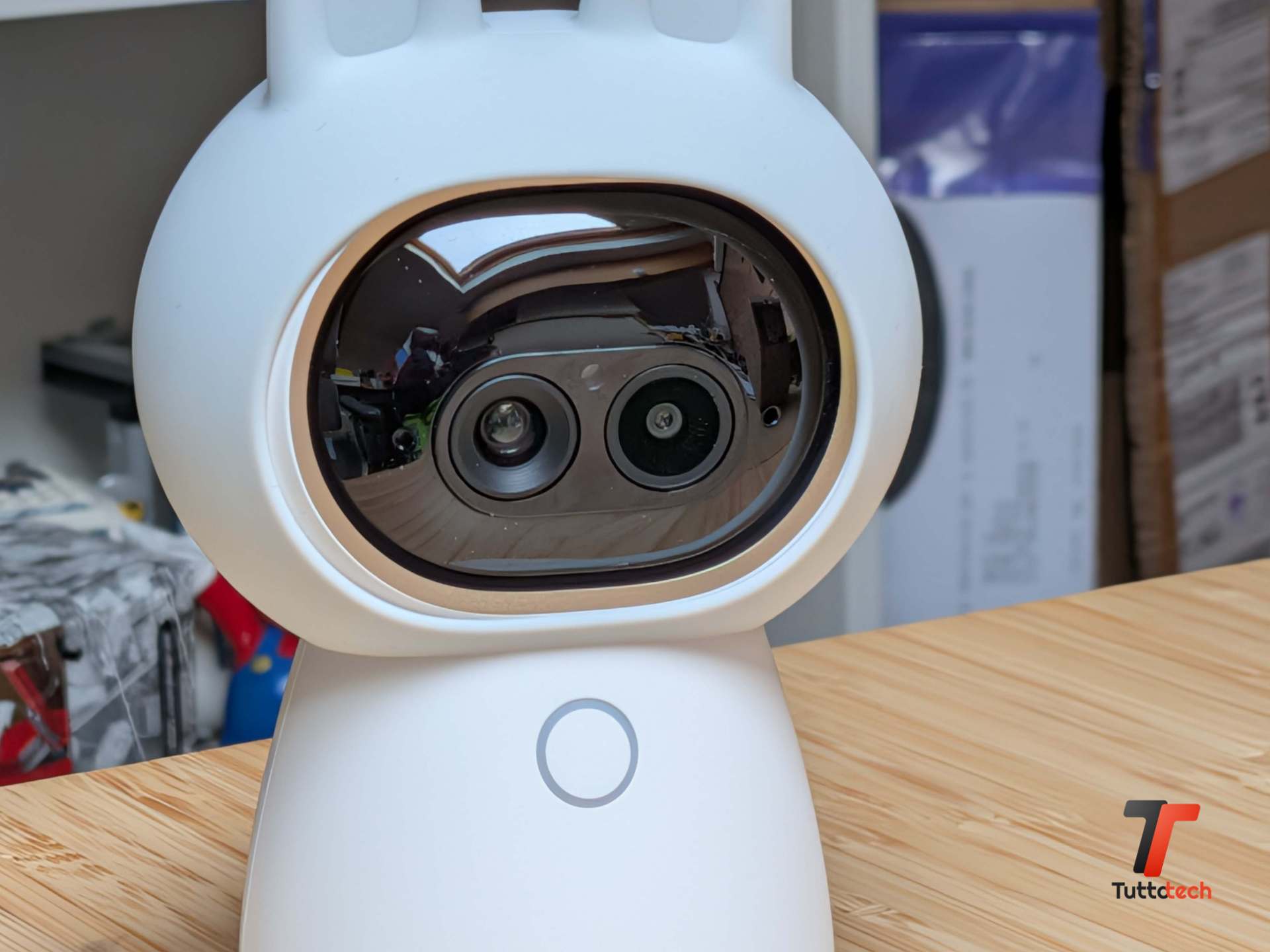 Il motore pan-tilt con rotazione a 360 gradi completa il quadro, con tracciamento automatico basato sull’intelligenza artificiale che segue persone o animali mantenendoli al centro dell’inquadratura. I LED a infrarossi a 940 nanometri, quasi invisibili, garantiscono visione notturna senza il caratteristico bagliore rosso. Il riconoscimento AI gira tutto localmente sul dispositivo: volti, animali domestici, gesti, sei categorie di suoni inclusi pianto di neonato e abbaiamento di cane. Nessun dato inviato al cloud per l’elaborazione, il che si traduce in risposte più rapide e in un approccio alla privacy più solido rispetto alla concorrenza.