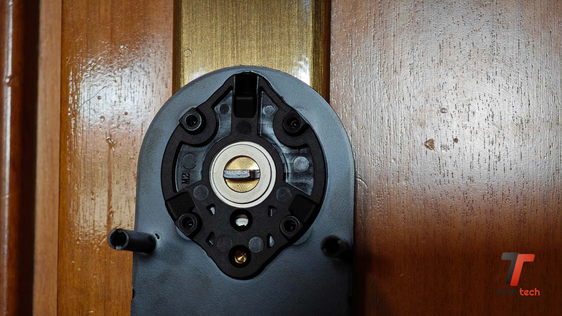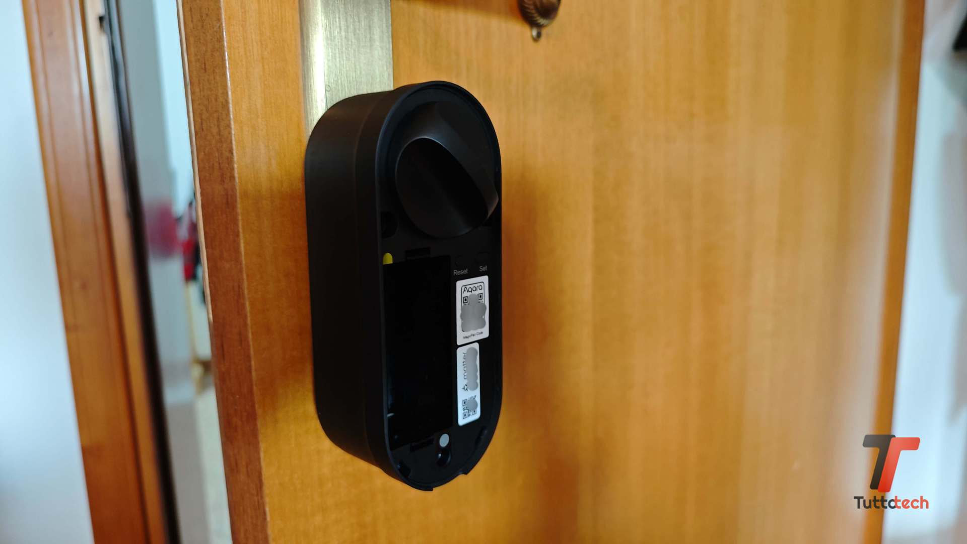 Manca, rispetto al modello originale, un modulo esterno per l’apertura, ma di questo vi parleremo a breve. L’installazione è decisamente semplice e non richiede alcun tipo di abilità manuale. Basta fissare la placca base al cilindro della serratura (che deve sporgere almeno di 3 millimetri dalla porta) sfruttando le tre piccole viti a brugola (trovate la chiave nella confezione di vendita), operazione semplice e veloce.