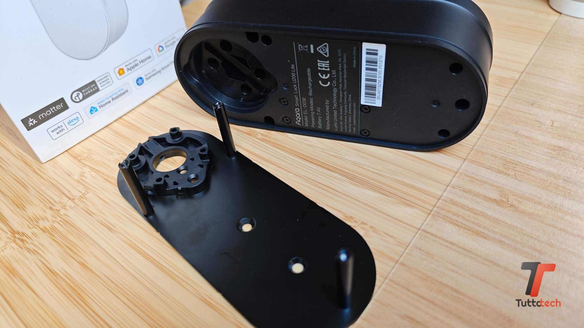 Questo perché dovrete lasciare la chiave interna inserita prima di montare la serratura, che per aprire e chiudere la porta va ad agire proprio sulla chiave. Nella struttura è presente una batteria ricaricabile tramite connettore USB-C che può essere rimossa per semplificare le operazioni e che si carica in un paio d’ore circa, garantendo circa sei mesi di utilizzo, anche se ovviamente si tratta di un dato destinato a cambiare in base al tipo di utilizzo.