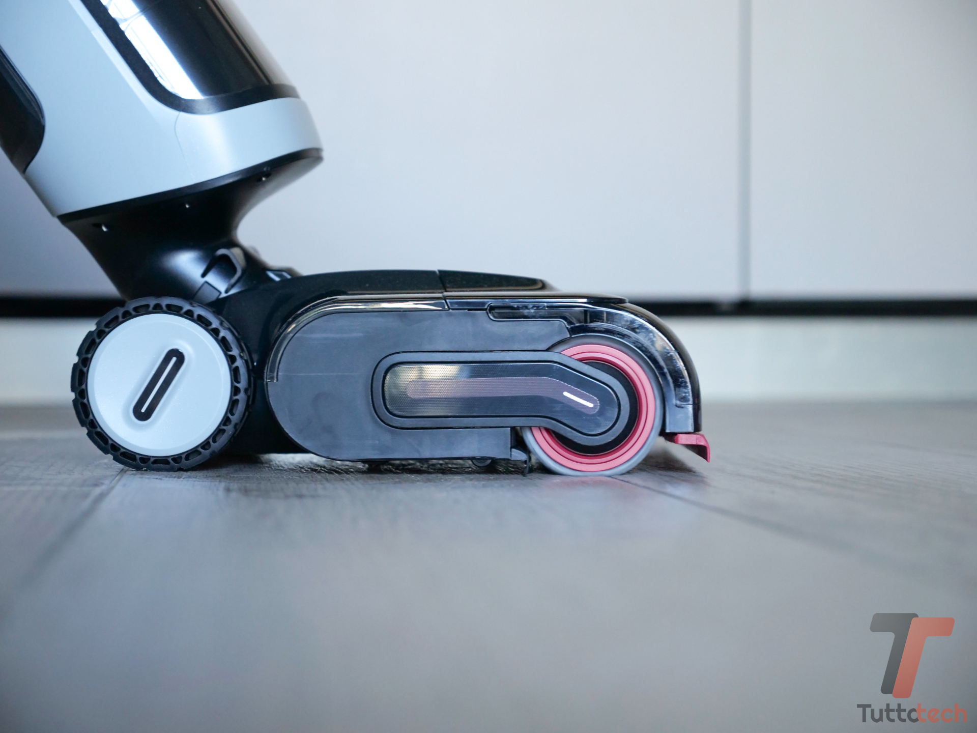 Le modalità di pulizia sono state pensate per ogni esigenza: la modalità automatica rileva sporco e regola potenza e flusso d’acqua autonomamente; la modalità acqua calda offre tre livelli di temperatura personalizzabili; la modalità solo aspirazione permette di raccogliere liquidi senza erogare acqua (in realtà è in grado di raccogliere anche briciole e sporco di piccola o media grandezza, tant’è che può sostituire agilmente un aspirapolvere cordless); infine, la modalità personalizzata consente di regolare ogni parametro manualmente.