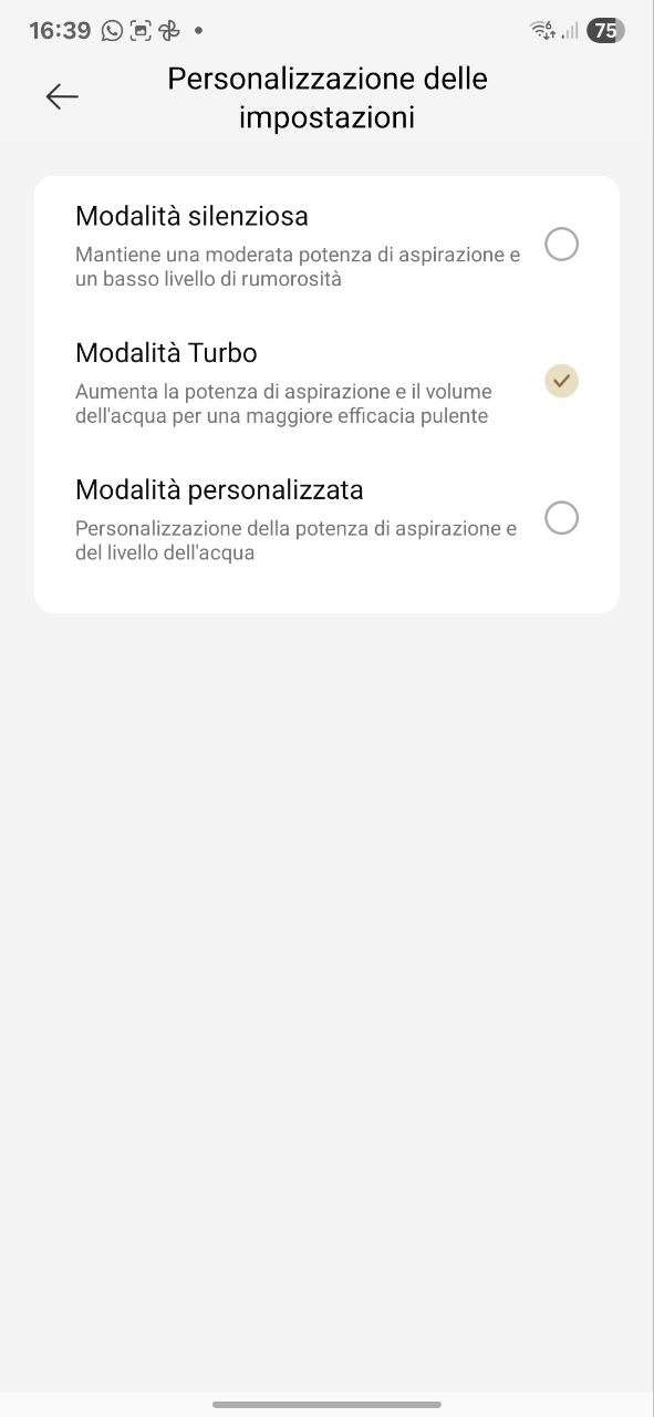 Dall’app è possibile regolare la temperatura scegliendo tra modalità standard e delicata, personalizzando l’esperienza in base al tipo di pavimento e sporco da affrontare.