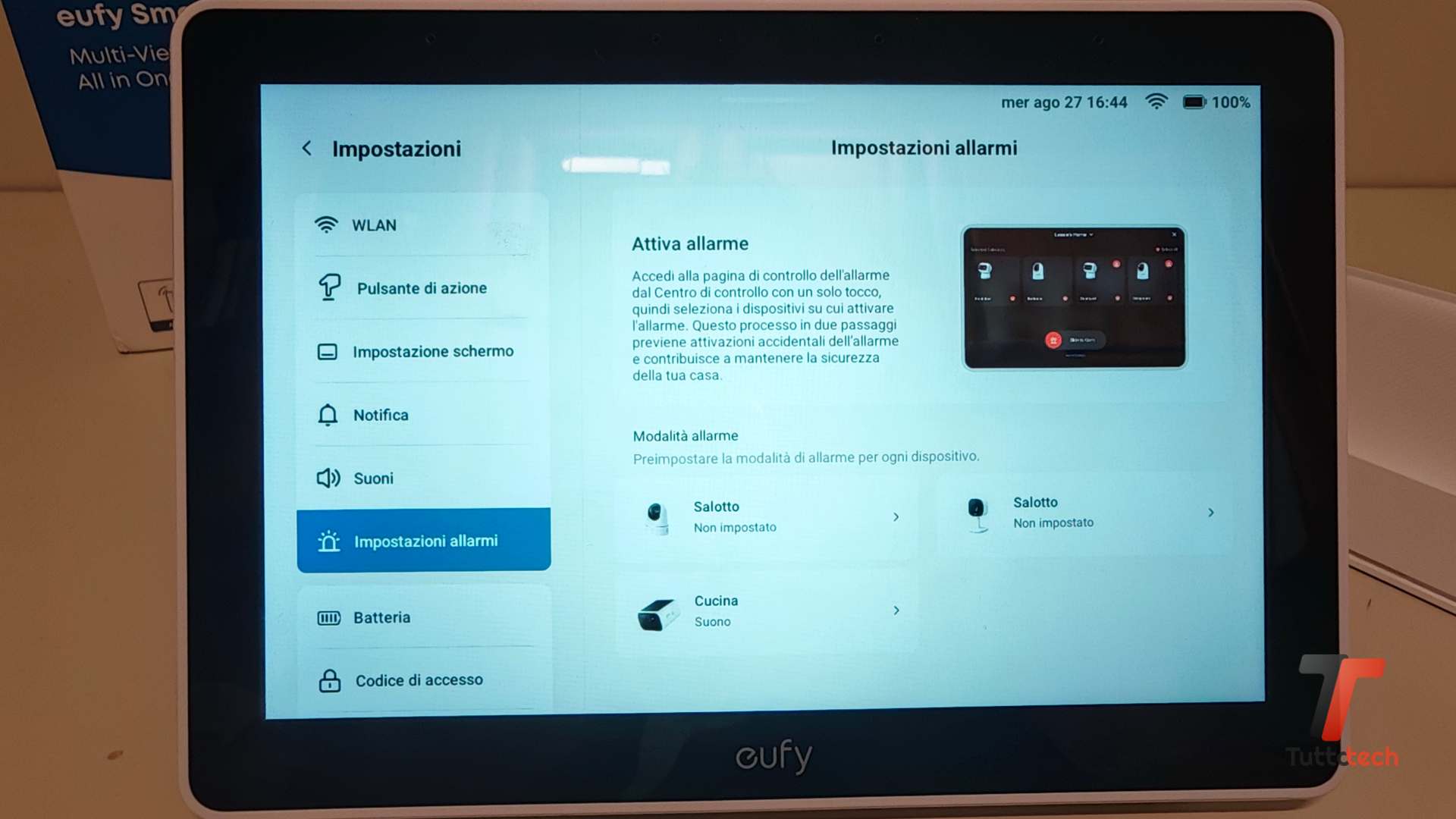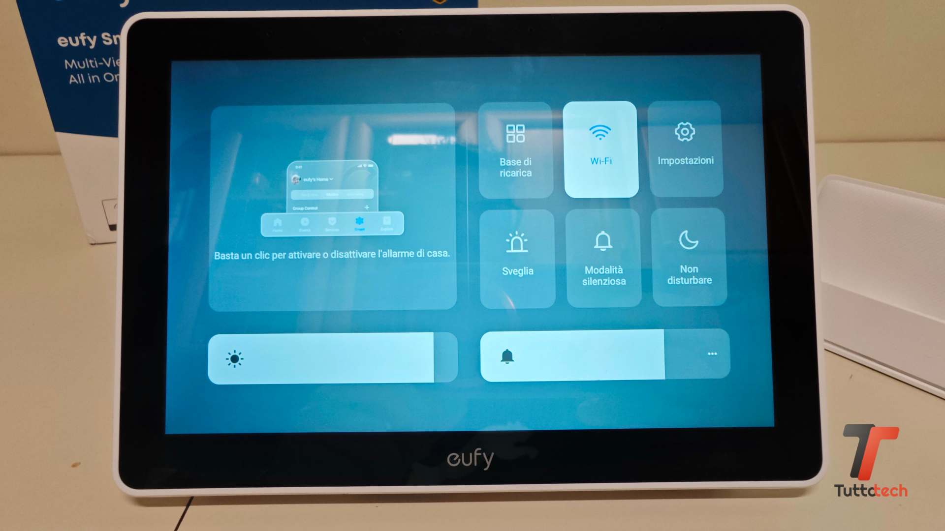 Come già detto, tutte le telecamere possono essere controllate da smartphone, o da un tablet, che però potrebbe non essere sempre disponibile. Per avere sempre tutto sotto controllo ecco eufy Smart Display E10, un tablet con schermo da 8 pollici pensato per la gestione delle telecamere, con la possibilità di vedere fino a 4 flussi in contemporanea.
