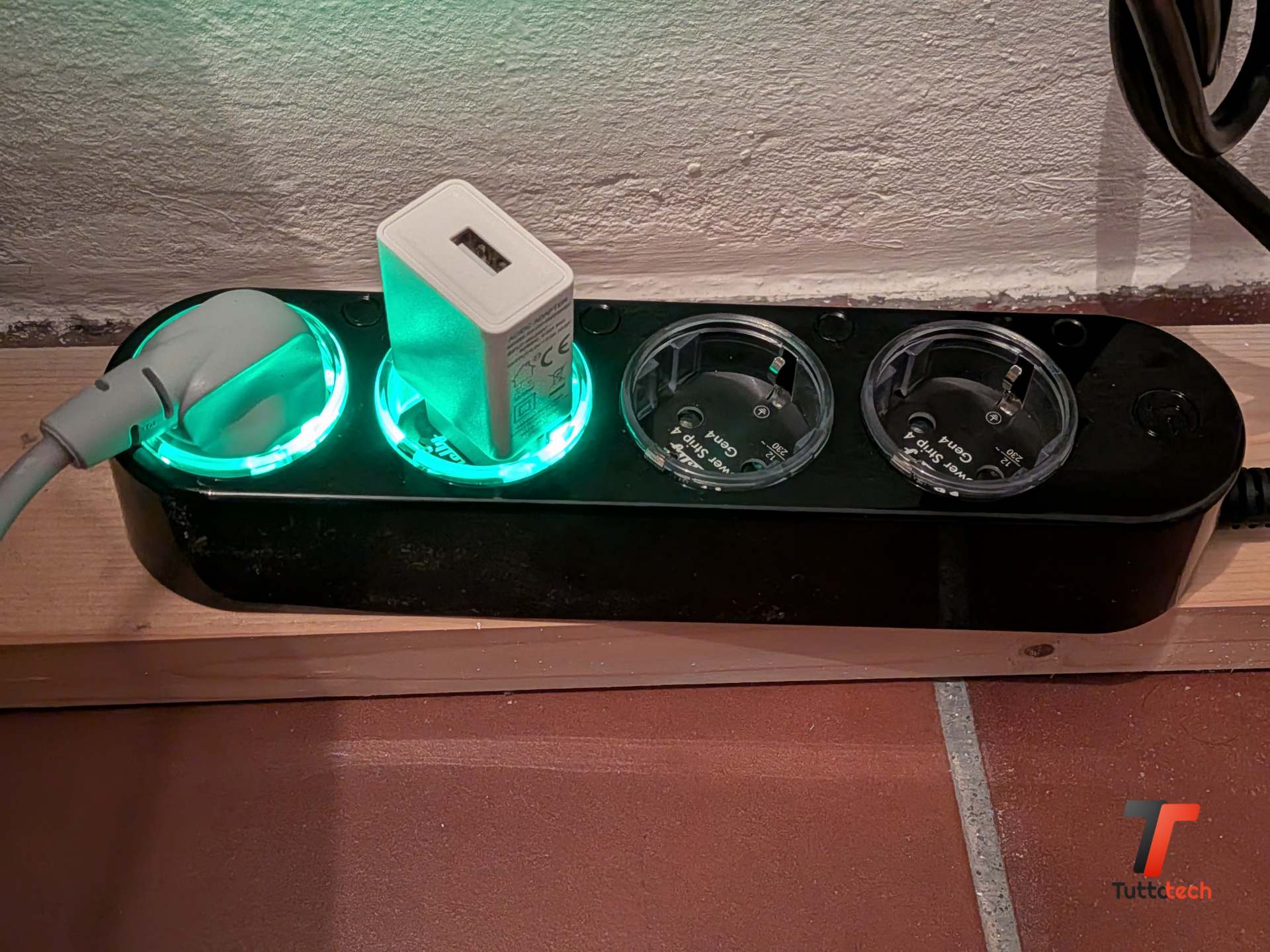 Oltre alla lavanderia, la Power Strip 4 Gen4 si presta naturalmente a scenari da scrivania, dove si ha spesso la necessità di gestire monitor, dock station, luci e altri accessori con logiche diverse. Con quattro prese indipendenti è possibile, ad esempio, spegnere automaticamente il monitor quando il computer va in standby leggendo la potenza assorbita dalla presa del PC, o accendere la luce della scrivania solo quando si è effettivamente seduti davanti al computer.