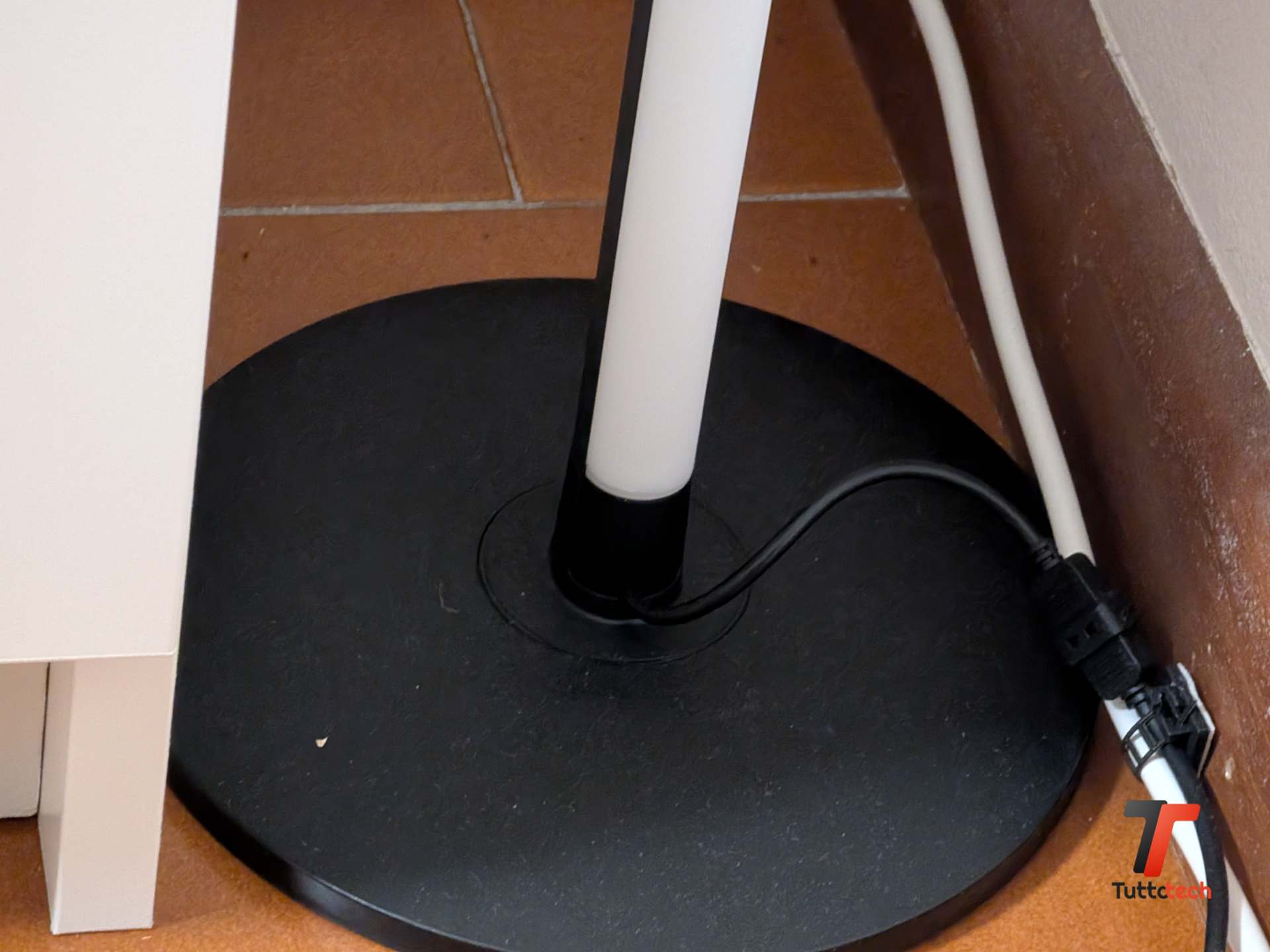 La lampada da pavimento è un prodotto con un design volutamente minimale: profilo sottile, attacco a parete opzionale con kit dedicato, che abbiamo usato per fissarla alle travi del sottotetto sopra la nostra postazione di lavoro prima di spostarla, e un consumo di 18 watt per gli stessi 1.200 lumen dichiarati della striscia. La differenza rispetto a RGBICWW Strip Light sta nella resa in modalità colorata: con la luce bianca la lampada si comporta ottimamente, con una temperatura regolabile da 2700 a 6500 K e una diffusione omogenea.