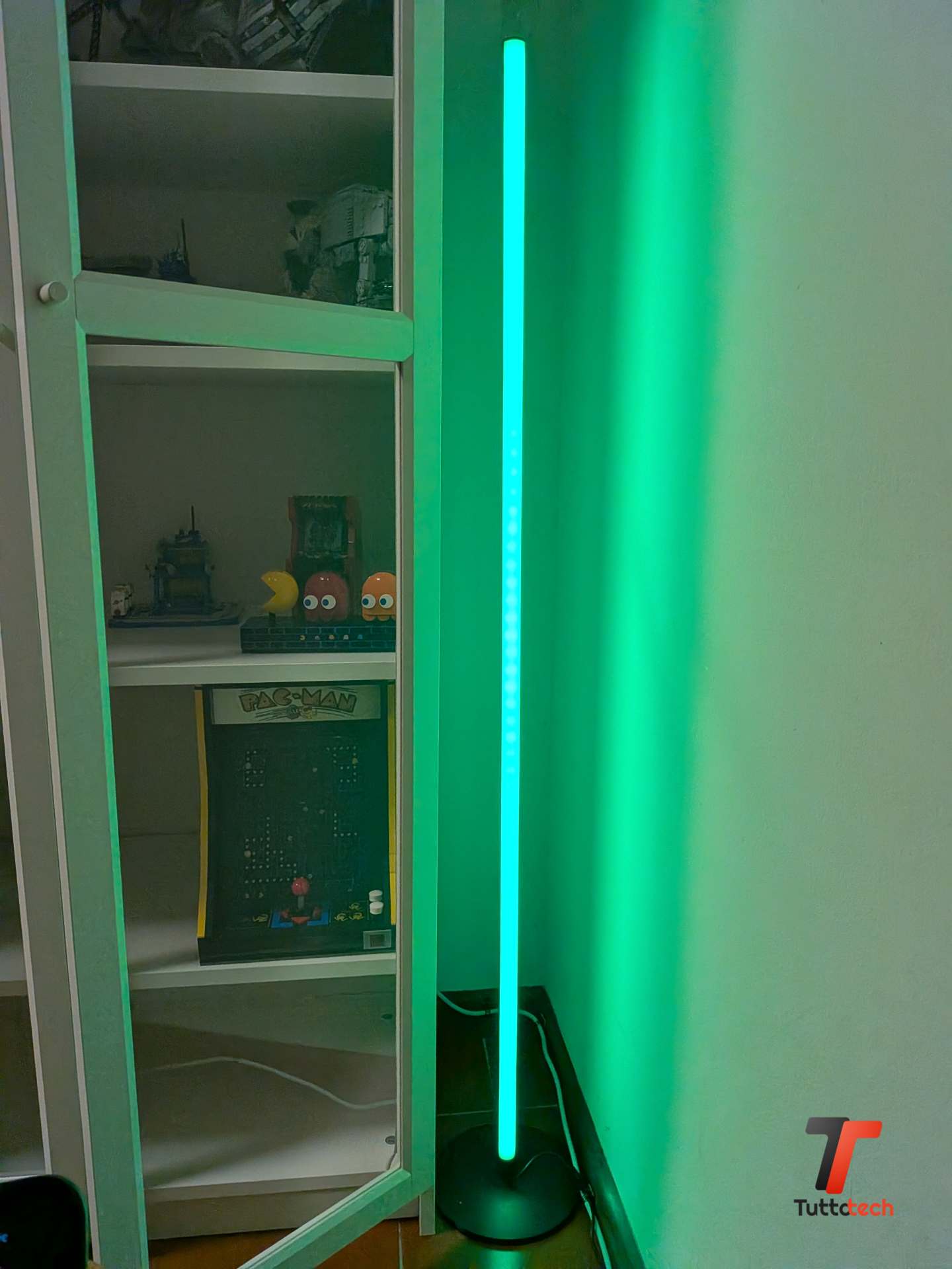 Nella nostra configurazione attuale, la lampada SwitchBot RGBICWW Floor Lamp illumina la vetrina LEGO e l’abbinamento funziona sorprendentemente bene: la luce bianca calda valorizza i colori dei modelli, mentre in certe fasce orarie passiamo a una modalità colorata a bassa luminosità che crea un effetto vetrina molto più curato di quanto ci aspettassimo da un prodotto a questo prezzo.
