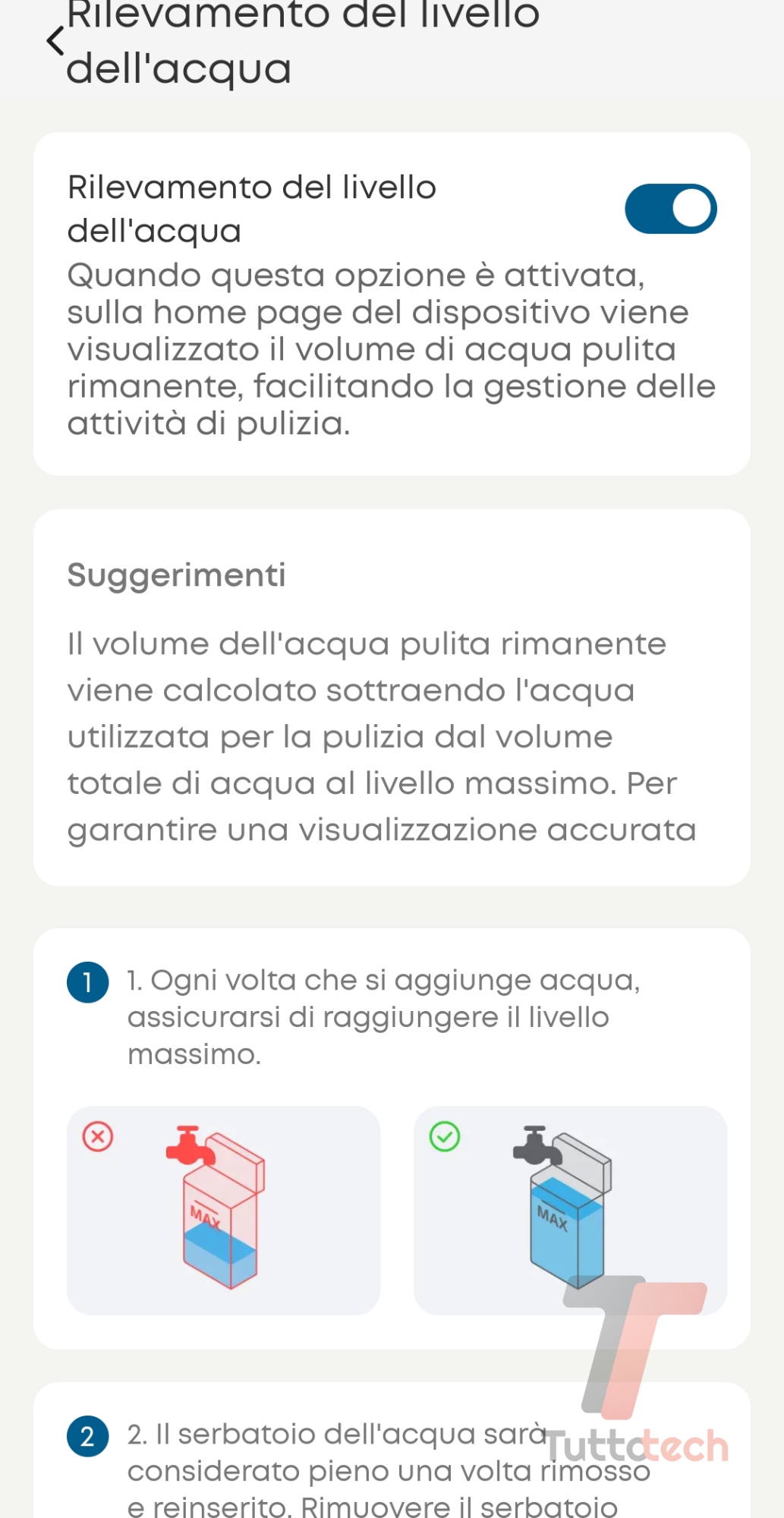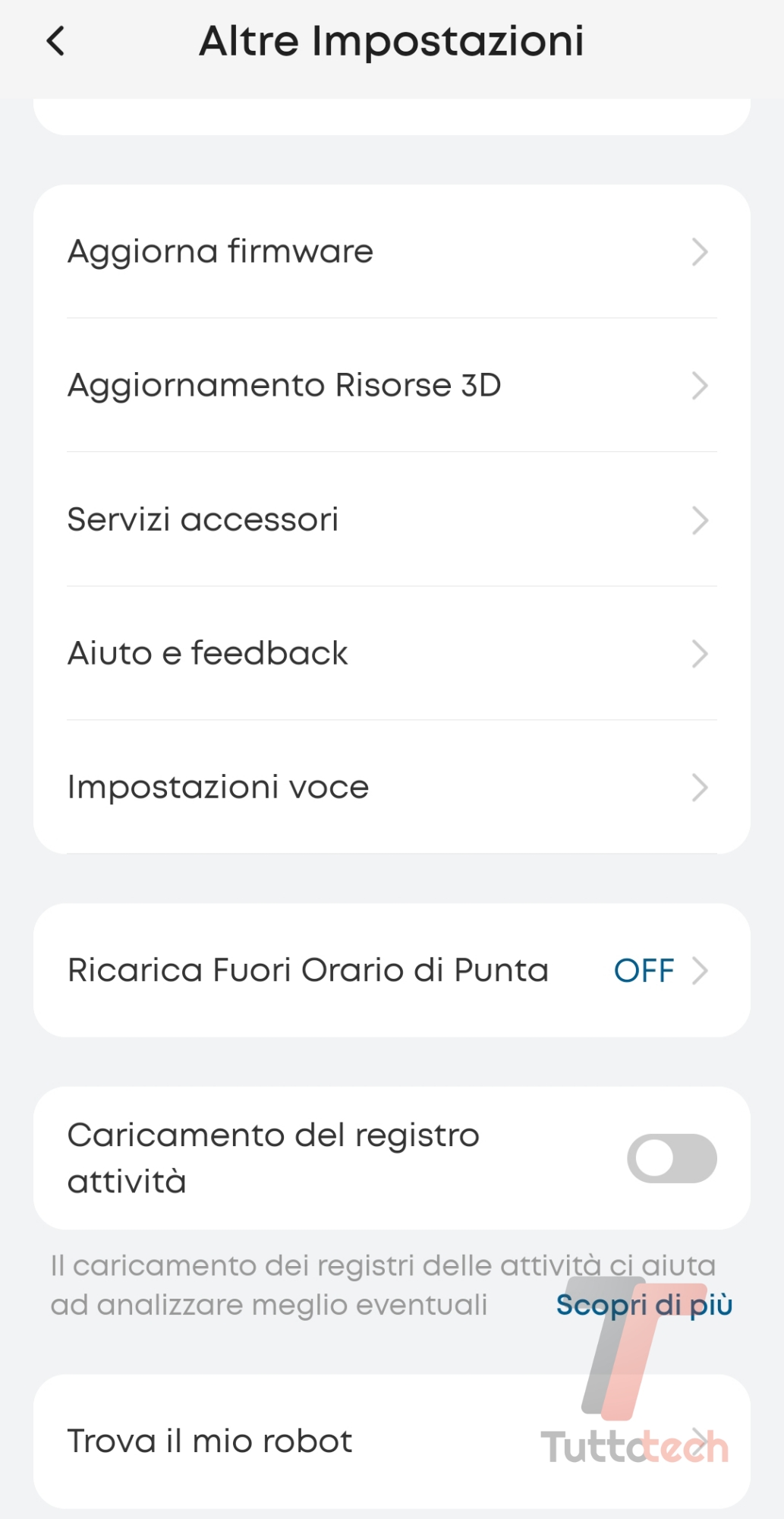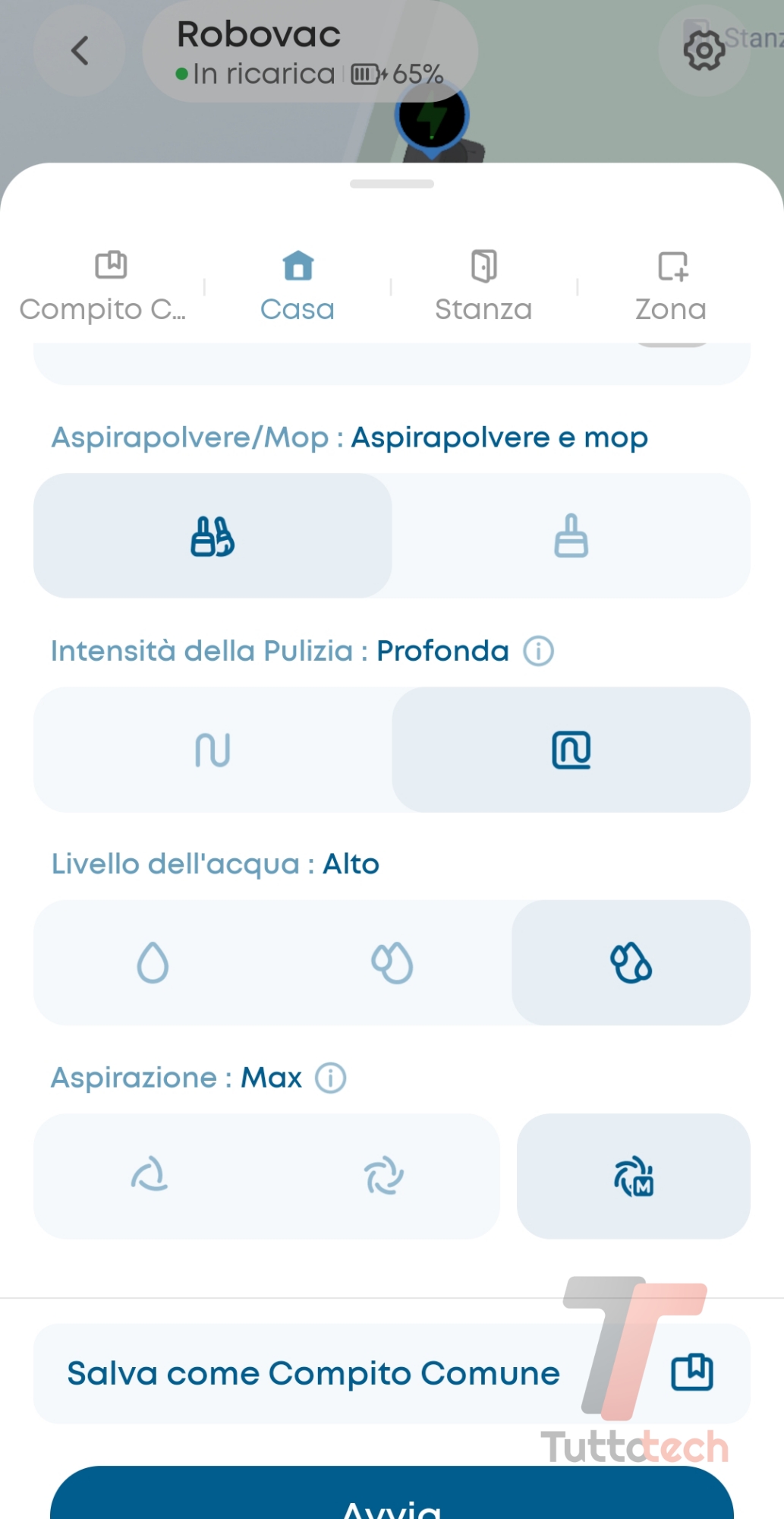 La sua applicazione è carina a livello estetico, funziona bene ed è personalizzabile con tutte le opzioni del caso per far sì che la pulizia, sia aspirazione che lavaggio, sia il più possibile aggiustata sulle proprie esigenze e sui propri ambienti. Permette, infatti, di modificare le impostazioni di aspirazione e lavaggio, programmare le pulizie, modificare la mappa, visualizzare l’usura degli accessori, modificare il rilevamento degli ostacoli, modificare il comportamento con i tappeti, attivare la modalità non disturbare, configurare gli assistenti vocali Gemini/Google Assistant e Amazon Alexa, vedere lo storico delle pulizie, aggiornare il firmware e fare qualche altra piccola cosa ancora. Ovviamente per far sì che tutti funzioni e sia possibile è necessario che lui sia collegato a una rete Wi-Fi, nonostante abbia il Bluetooth per un accoppiamento rapido.