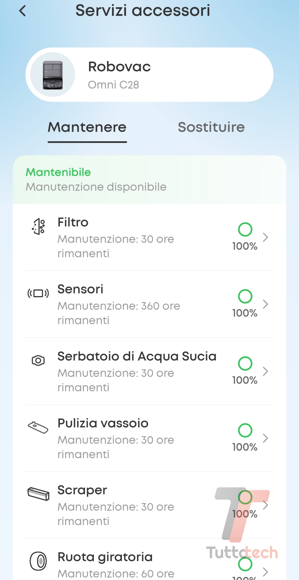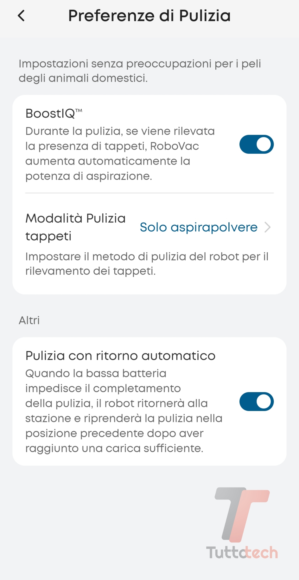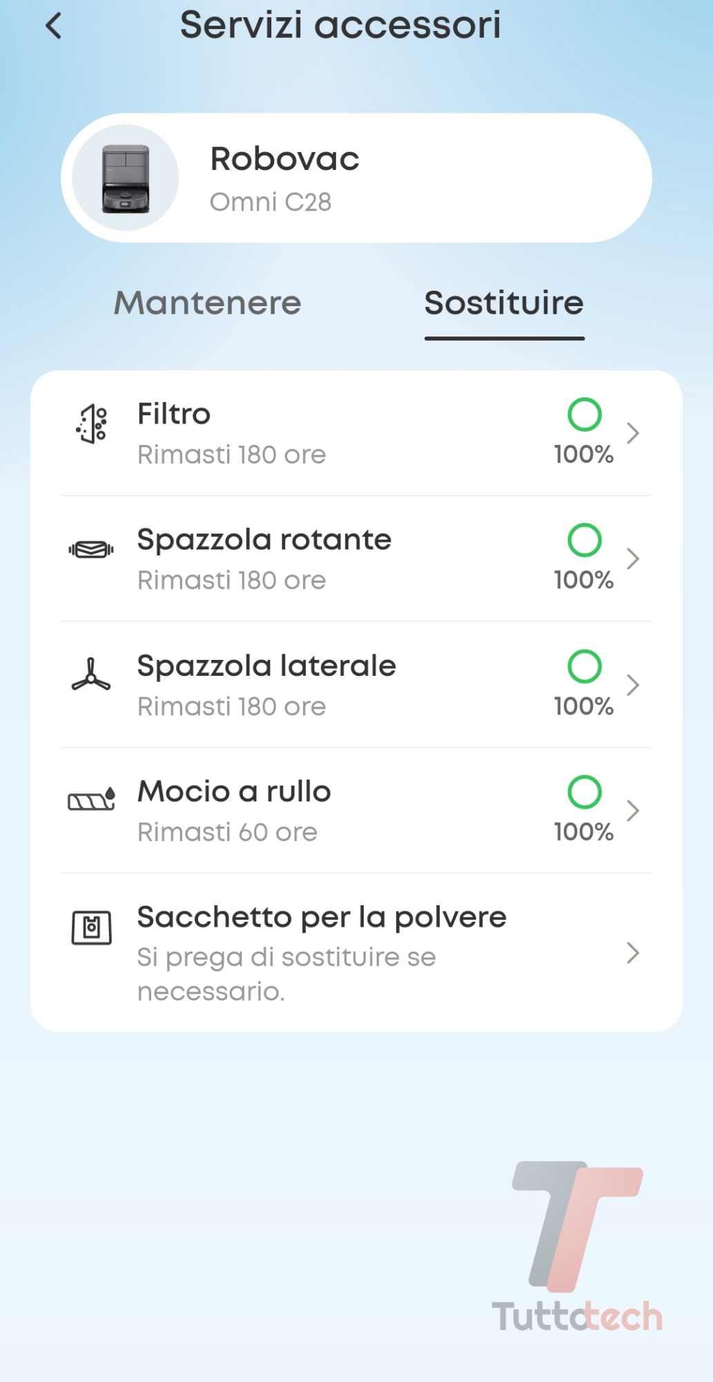 La sua applicazione è carina a livello estetico, funziona bene ed è personalizzabile con tutte le opzioni del caso per far sì che la pulizia, sia aspirazione che lavaggio, sia il più possibile aggiustata sulle proprie esigenze e sui propri ambienti. Permette, infatti, di modificare le impostazioni di aspirazione e lavaggio, programmare le pulizie, modificare la mappa, visualizzare l’usura degli accessori, modificare il rilevamento degli ostacoli, modificare il comportamento con i tappeti, attivare la modalità non disturbare, configurare gli assistenti vocali Gemini/Google Assistant e Amazon Alexa, vedere lo storico delle pulizie, aggiornare il firmware e fare qualche altra piccola cosa ancora. Ovviamente per far sì che tutti funzioni e sia possibile è necessario che lui sia collegato a una rete Wi-Fi, nonostante abbia il Bluetooth per un accoppiamento rapido.