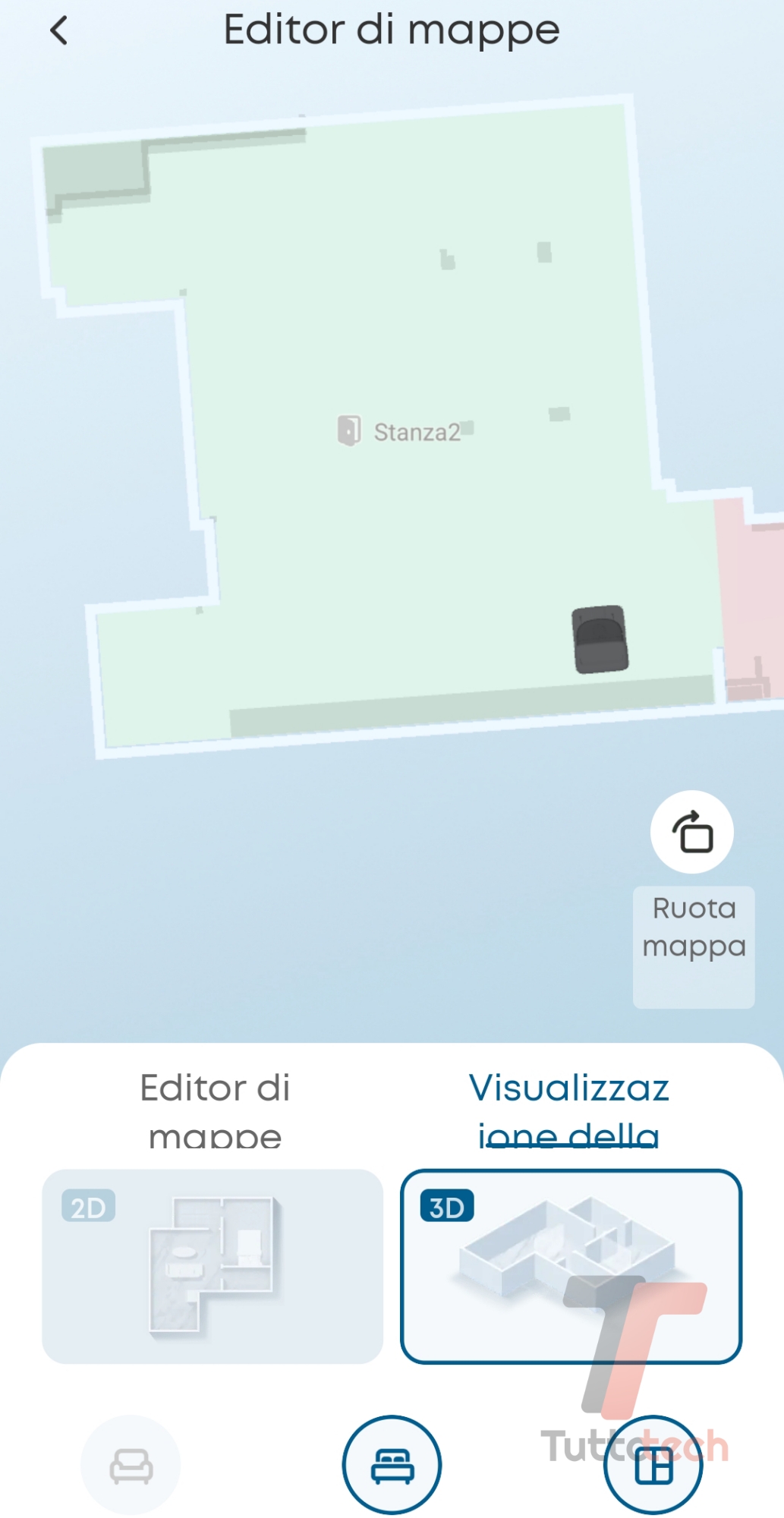 Eufy Omni C28 utilizza il più classico dei sistemi di navigazione che si compone di una torretta LiDAR con laser posizionata nella parte alta, di vari sensori di prossimità lungo il perimetro e nella parte inferiore e di una fotocamera dotata di AI e di un laser posizionati all’interno del paraurti. Ciò significa che non può che muoversi bene all’interno dello spazio e riconoscere in maniera accurata gli ostacoli, che sono sempre scansati in maniera corretta e con l’opportuna delicatezza. Lui non fa manovre anomale, non si perde, non sbatte qua e là e si sposta negli ambienti con enorme attenzione e questo lo rende un prodotto affidabile. La fotocamera, purtroppo, è utilizzata solo per riconoscere ed evitare gli ostacoli e non è capace di fungere da videocamera di sorveglianza da remoto e di riconoscere gli oggetti, neanche quelli più comuni. Di pari passo vanno le mappe perché sfruttando il suo ottimo sistema di navigazione e riconoscimento degli ostacoli sono precise e attendibili, anche in 3D.