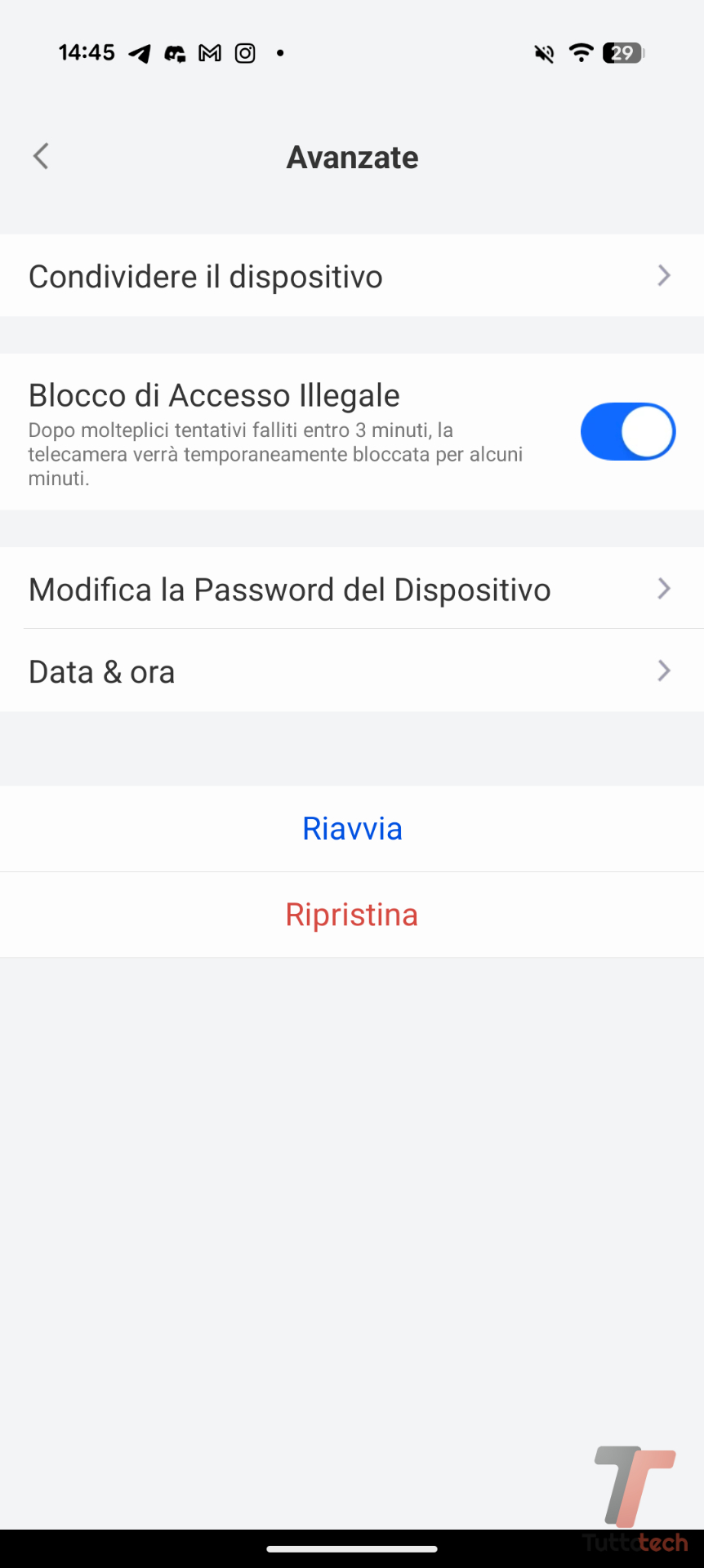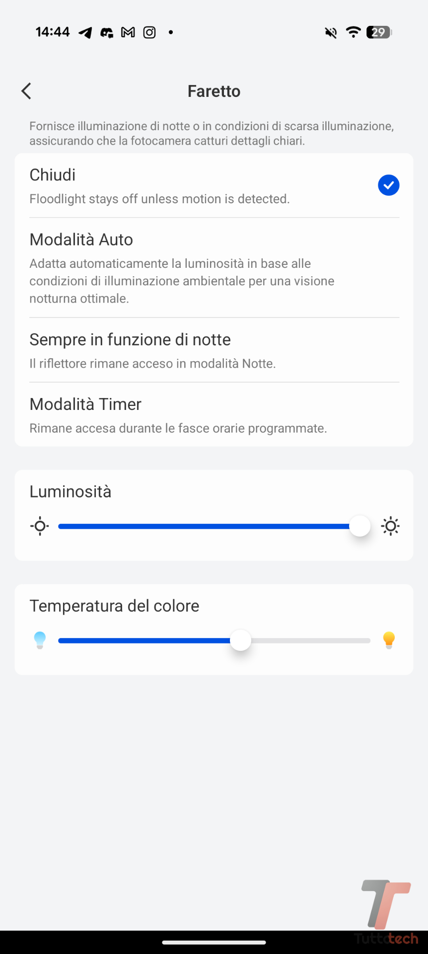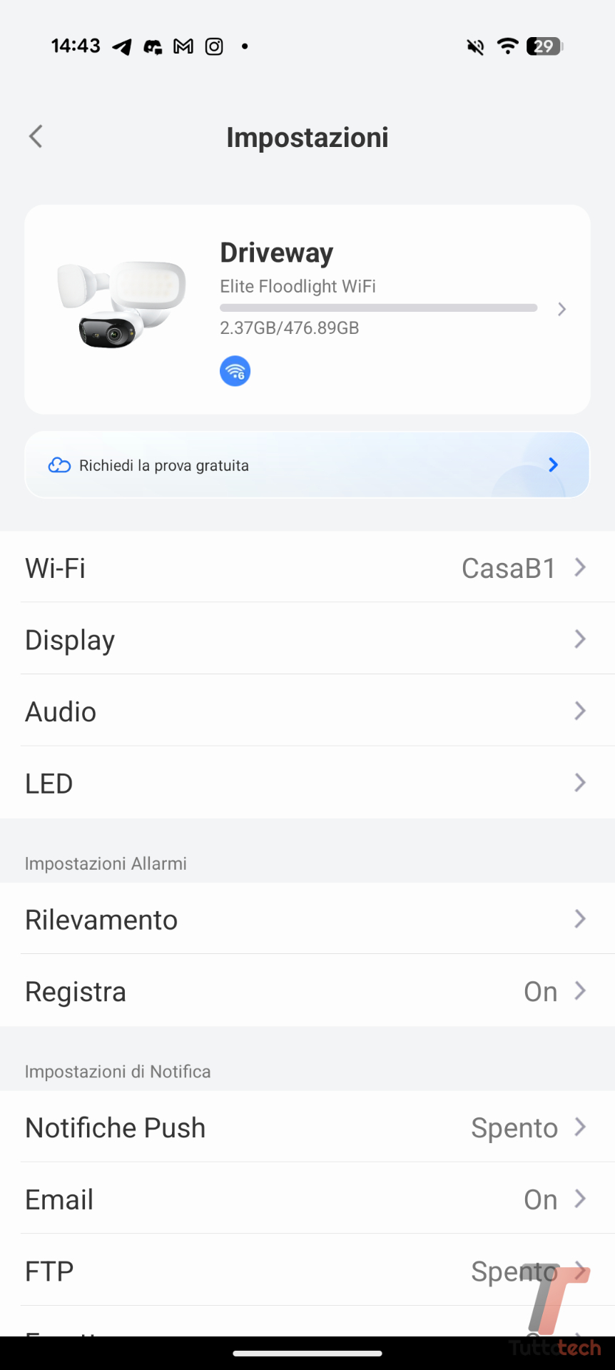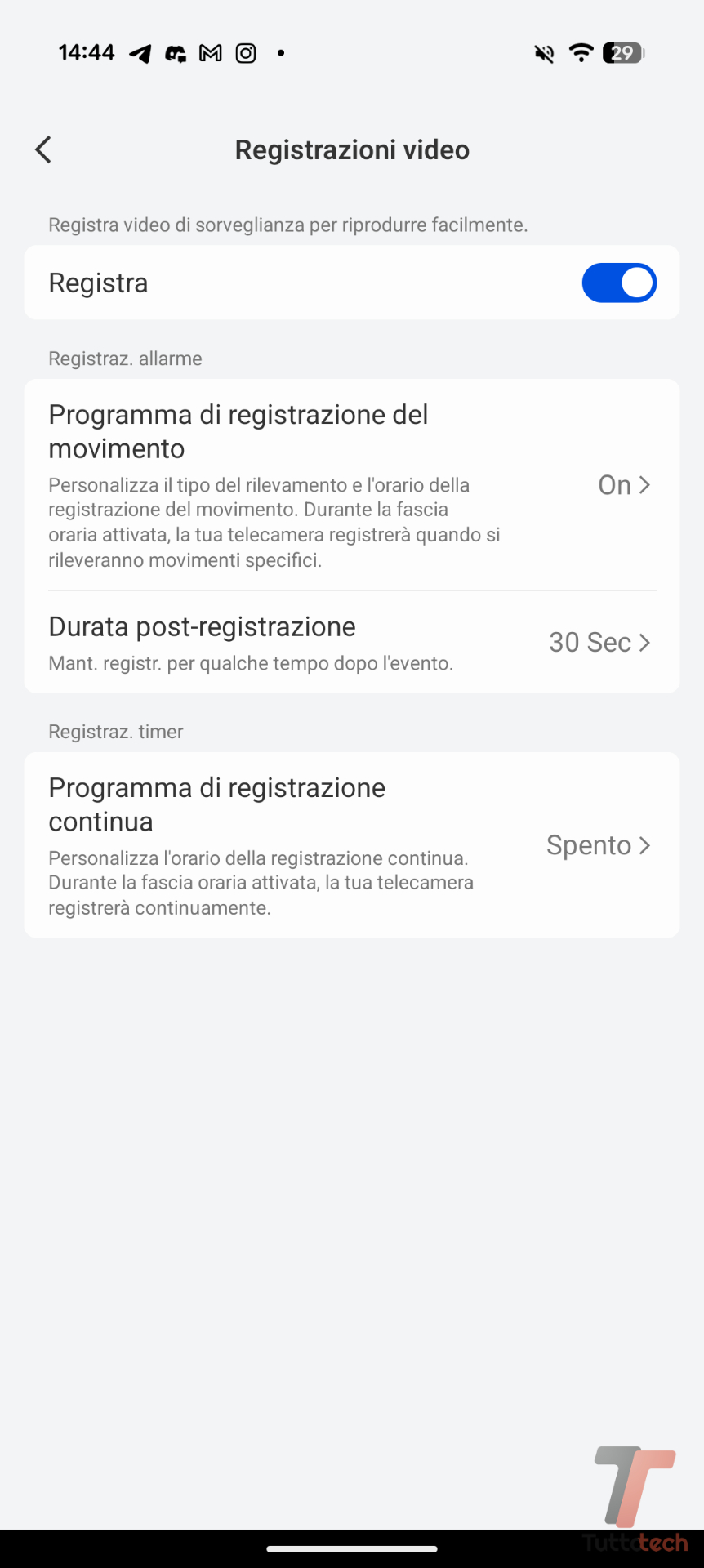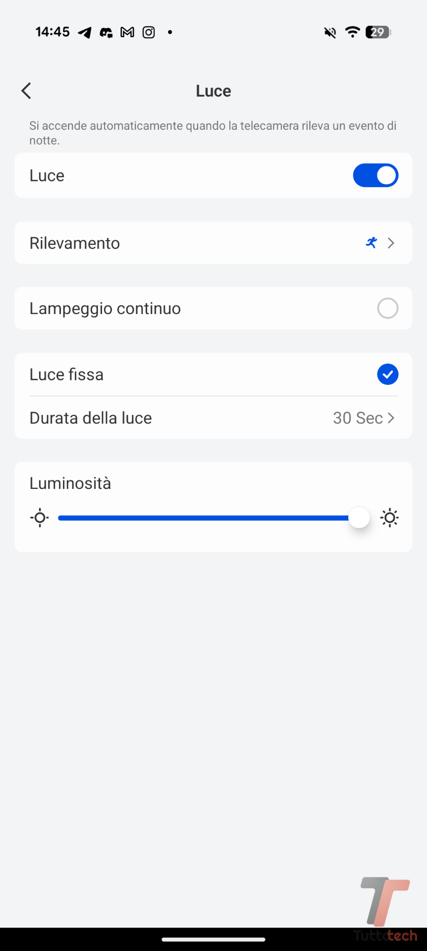 Dall’app si può regolare praticamente ogni aspetto: dal comportamento del rilevamento che genera notifiche e registrazioni, fino alla definizione delle aree in cui la videocamera non deve attivarsi. Si possono tracciare perimetri virtuali, configurare zone di attraversamento o di permanenza sospetta, regolare la sensibilità del sensore, introdurre un ritardo prima della registrazione o dell’allarme e persino filtrare gli eventi in base all’oggetto rilevato: persone, animali, veicoli o oggetti generici.
