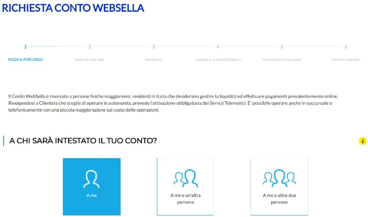 Iniziamo il nostro approfondimento con la procedura da seguire per aprire un conto corrente WebSella: