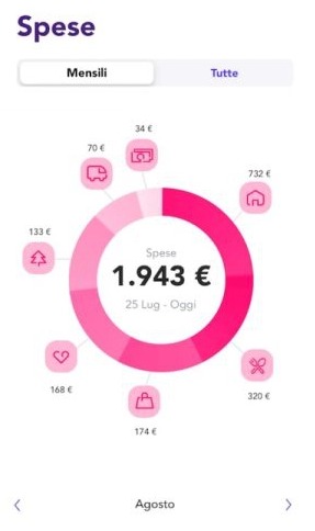 - gestire le spese e le entrate tramite comoda visualizzazione in app, disponibile per device Android e iOS;