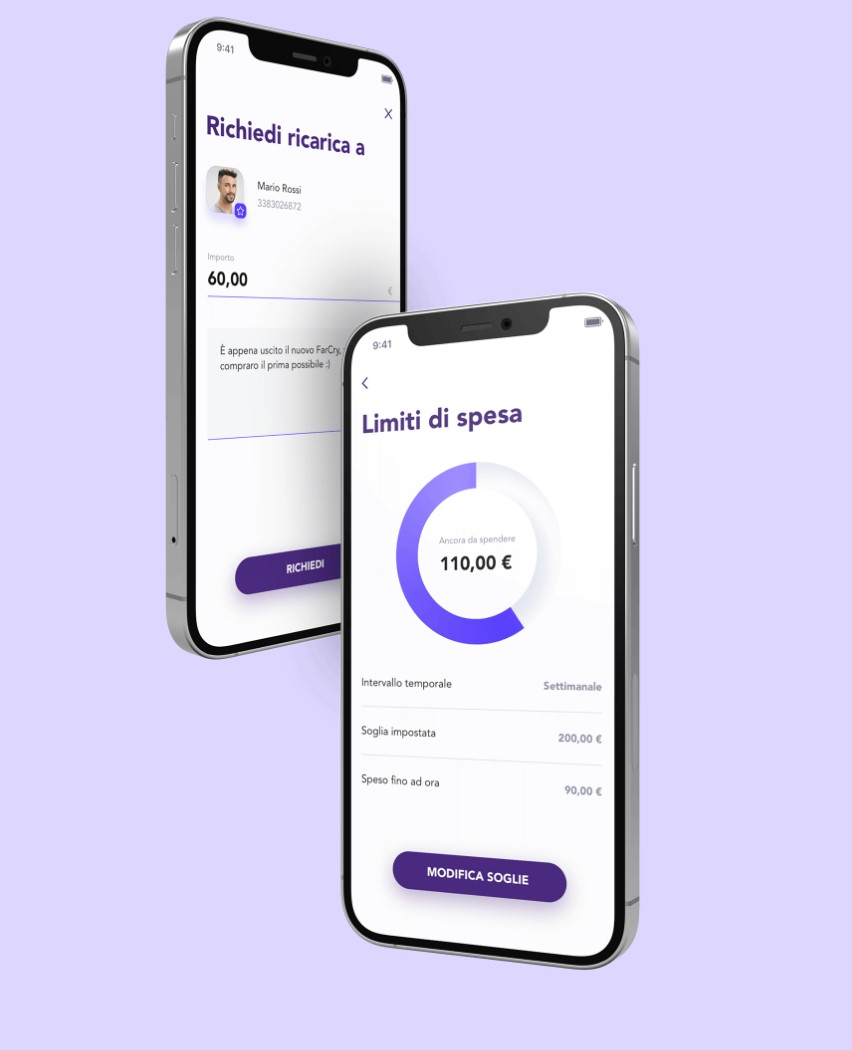 - richiedere una ricarica o ricevere un limite di spesa ad un determinato intervallo temporale (settimanale / mensile).