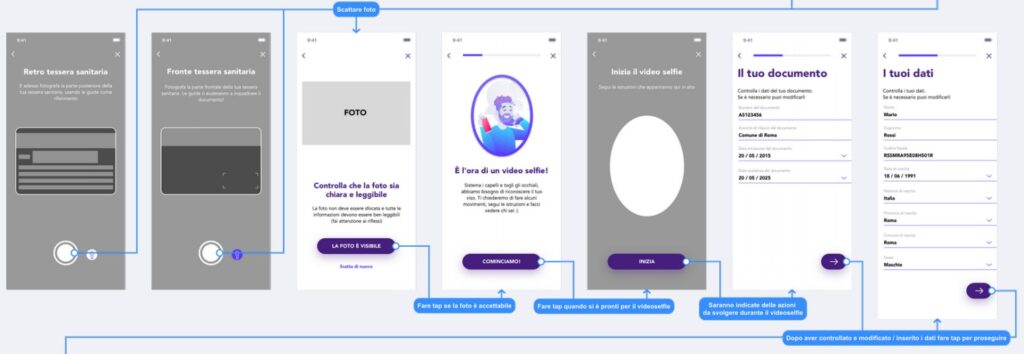 Dopo aver scansionato i documenti bisogna ora registrare un breve video selfie in cui viene chiesto di muovere il viso o chiudere gli occhi, stando attenti a rimanere sempre nei limiti dell’ovale a schermo. La procedura è simile a quella per impostare il Face ID su device iPhone o riconoscimento facciale per smartphone Android. Dopo il video selfie controlliamo che le informazioni relativi a dati, documenti ed indirizzo siano corrette e rispondiamo al questionario antiriciclaggio.