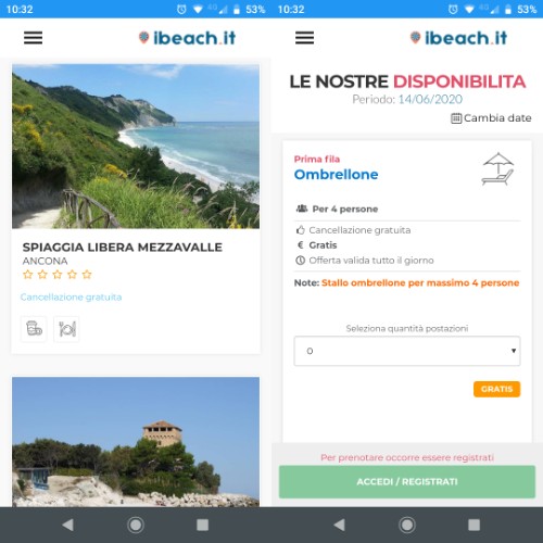 Importante: con iBeach sono prenotabili anche le spiagge di Civitanova Marche, Falconara Marittima, Montemarciano, Numana, Porto Recanati, Porto San Giorgio e Senigallia.
