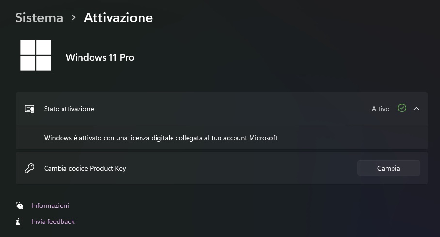 Concludiamo esponendo un ulteriore vantaggio che deriva dall’utilizzo di una licenza digitale: quando viene apportata una modifica hardware significativa, ad esempio la sostituzione di un componente fondamentale come la scheda madre, Windows 11 potrebbe non essere più attivabile tramite Product Key. Con una licenza digitale questo problema non si pone, in quanto lo strumento Risoluzione dei Problemi permette di attivare Windows anche dopo un cambio significativo delle componenti hardware del sistema.