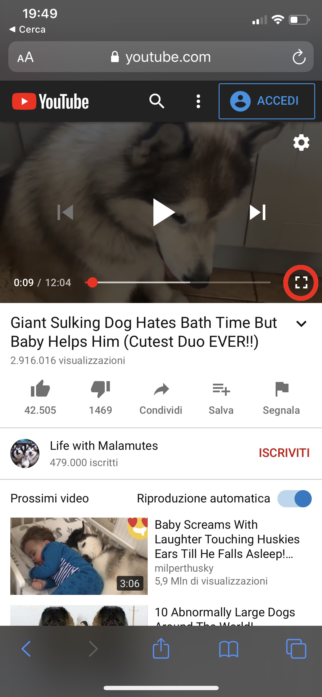 - Se vogliamo riprendere la visualizzazione a schermo intero, tappiamo una volta sull’interfaccia e poi clicchiamo sull’icona per ingrandire la finestra