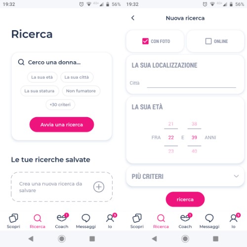 Se non avete trovato nessun profilo interessante, potete sempre affinare la vostra personale “indagine” pigiando sul tab Ricerca e filtrando i risultati della nuova ricerca per: