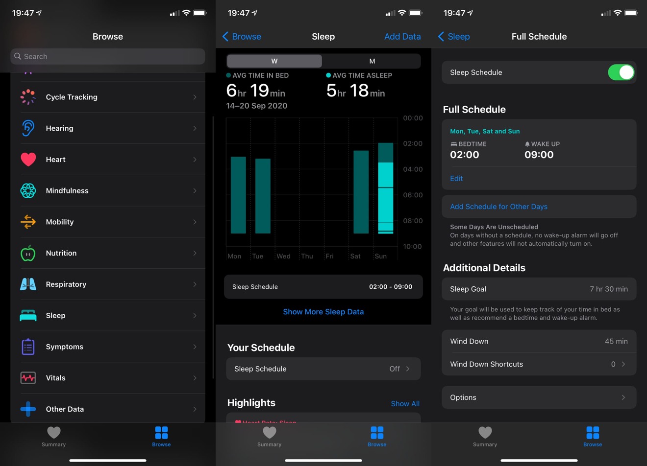 La nuova modalità del sonno presente in iOS 14 e watchOS 7 è l’evoluzione di un processo iniziato diverse versioni software fa: Apple ha infatti introdotto gradualmente features che consentono agli utenti di selezionare il proprio pattern di riposo, impostando un allarme che consiglia di andare a letto e una nuova interfaccia per la selezione della sveglia e del numero di ore di riposo desiderate.