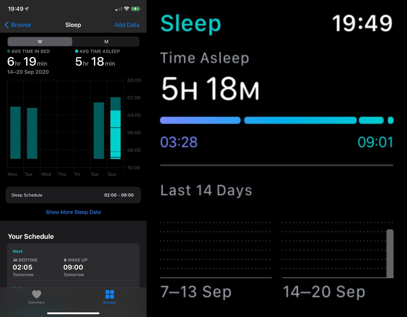 All’interno dell’app Salute tappiamo su Mostra altri dati sul sonno, così da visualizzare le statistiche avanzate relative alla notte appena trascorsa e ai 14 giorni precedenti. Se volete vedere all’opera le nuove funzioni relative alla modalità del sonno in iOS 14 e watchOS 7 vi consigliamo la visione del seguente video realizzato dai colleghi di Apple Insider.