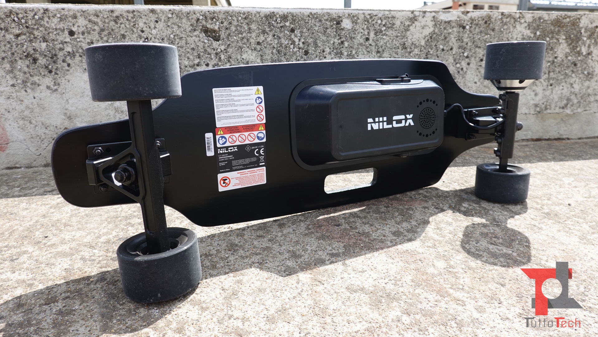 Parlando di velocità massima, Nilox dichiara 12km/h ma nei nostri test siamo arrivati a 18-20km/h, anche con quasi 100kg di peso sulla tavola (che corrisponde al peso massimo dichiarato), forse i 12km/h si riferiscono alla modalità lenta, mentre con la modalità più veloce il dato si supera abbastanza facilmente.