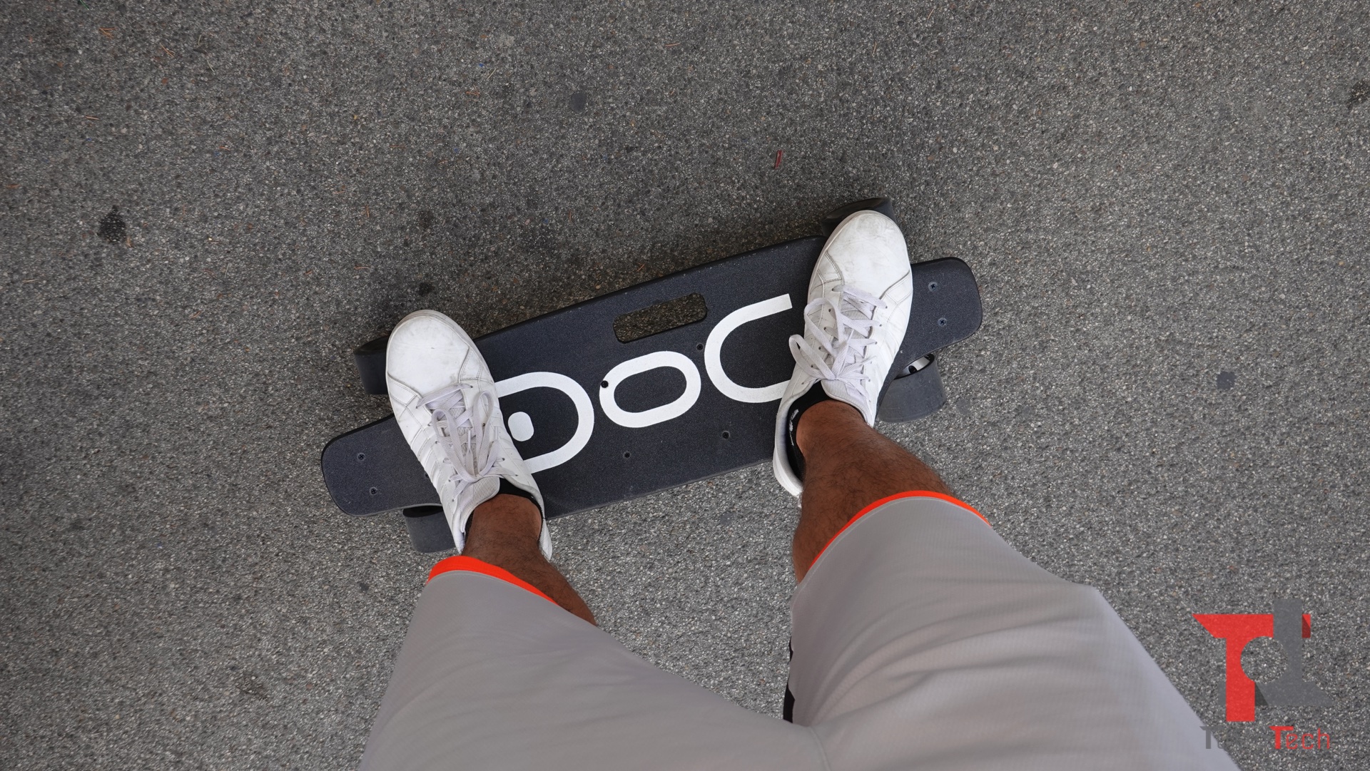 Il rivestimento antiscivolo della tavola è ben realizzato, non ci è mai capitato di perdere il contatto tra piede e tavola, mentre la colorazione nera con la sola scritta DOC sul lato superiore lo rende un po’ troppo anonimo, seppur non si possa definire brutto.