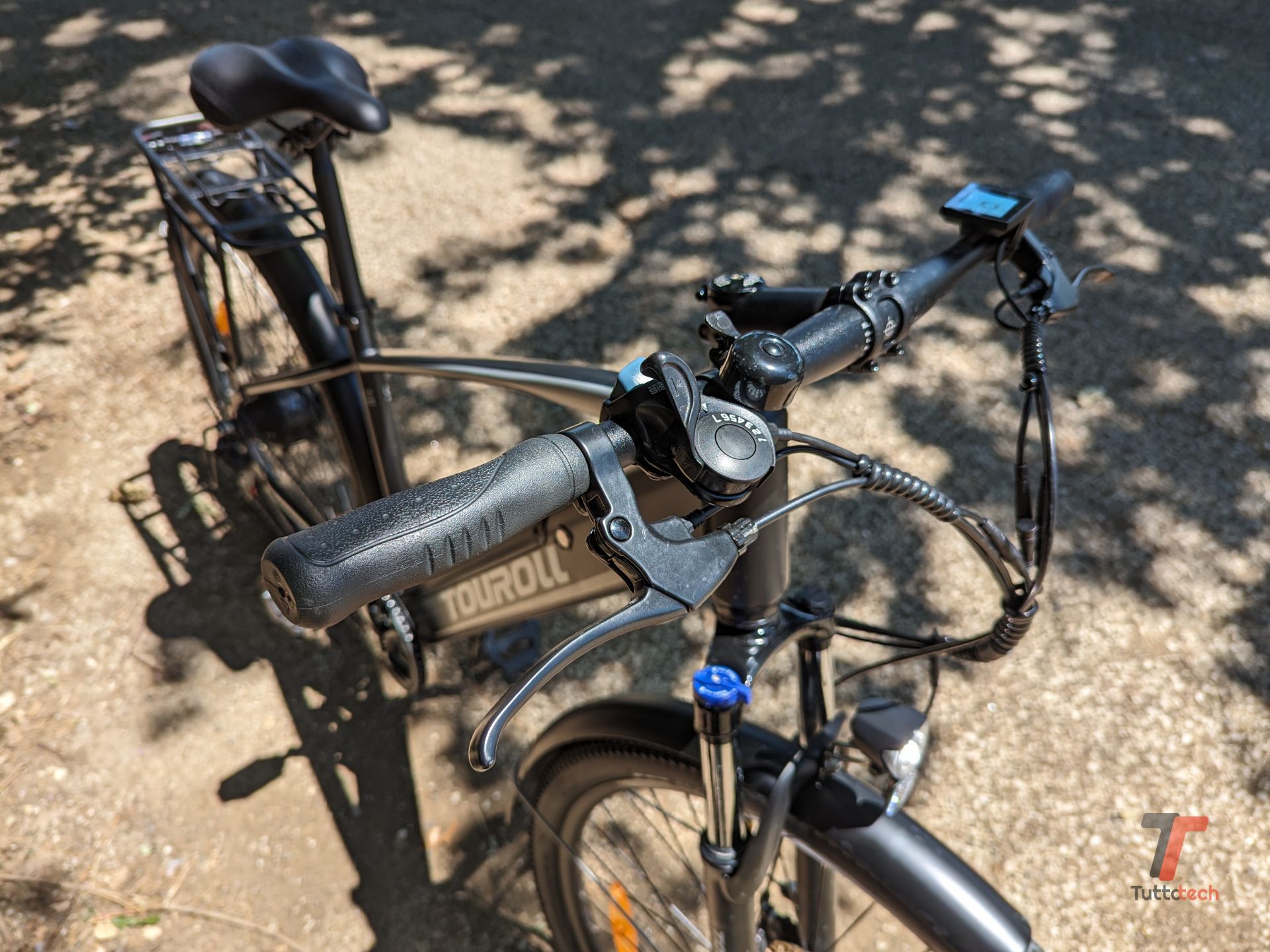 Meno convincenti i freni. Complice il peso non eccessivo ma praticamente doppio rispetto alle bici da città non assistite, i freni a disco meccanici della Touroll J1 sono solo sufficienti: li abbiamo trovati abbastanza modulabili ma peccano un po’ in potenza frenante. Probabilmente già con delle pastiglie diverse, magari organiche, la frenata potrebbe migliorare, nonostante per la città l’impianto sia adeguato, meno percorrendo discese ripide e/o lunghe. Nella zona in cui l’abbiamo messa alla prova, collinare con molti saliscendi e salite/discese lunghe e ripide se l’è tuttavia cavata lo stesso, nonostante non sia l’habitat ideale di una bici del genere, più a suo agio nelle aree urbane e pianeggianti.