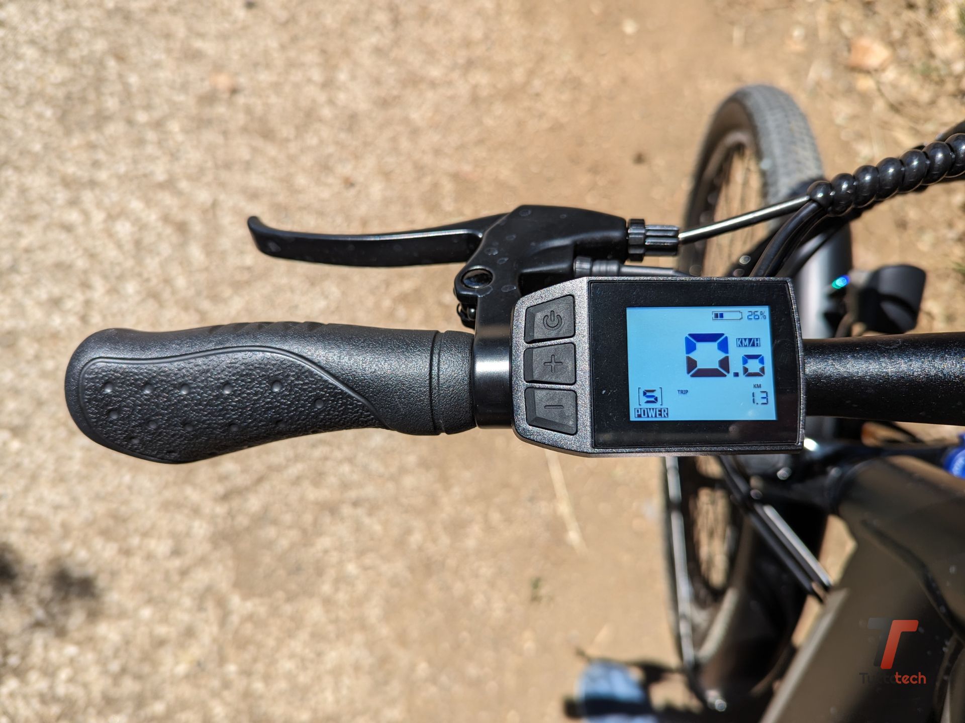Misura 1,8″ di diagonale e misura anche vari parametri utili facendo anche da computer di bordo e da ciclocomputer (qui i migliori e le informazioni per sceglierli), diciamo. Al fianco di questo display, un LCD, ci sono tre pulsanti fisici con cui gestire le varie opzioni e funzioni integrate, da usare singolarmente o insieme per abilitare alcune funzioni nascoste o per modificare determinati parametri. In primo piano ci sono le informazioni sulla velocità poste sopra varie opzioni selezionabili dall’utente (chilometri percorsi, durata della pedalata, velocità media, eccetera), mentre in alto a destra è visualizzata la percentuale di carica residua, nell’angolo opposto il livello di assistenza il cui intervento è visibile in tempo reale tramite una barra laterale che si riempie a seconda delle situazioni.