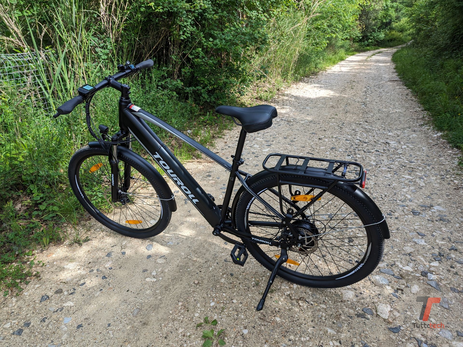 Ne risulta dunque un ibrido che, negli ultimi anni, ha preso molto piede nel settore delle biciclette sia elettriche che tradizionali, le cosiddette bici da trekking, adatte sia alla città che alle gite fuori porta, magari con qualche sterrato leggero o mulattiera, che può affrontare senza grossi problemi anche la Touroll J1 grazie alla gommatura abbastanza abbondante (ricordiamo che 2,1″ fino a qualche anno fa era uno standard fra le MTB nella disciplina del cross country).