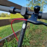 Ho citato le luci: esattamente, perché Xiaomi Electric Scooter 4 Lite è dotato di una luce anteriore bianca e di una posteriore rossa, che si può lasciare accesa per i viaggi notturni o che si accende quando si tocca la leva del freno. Quest’ultima è sul lato sinistro e risulta facilmente accessibile. A disposizione un pratico cavalletto sul lato sinistro della pedana, un po’ fastidioso da andare a “prendere” con il piede (ma del resto questo è il prezzo della sua compattezza).