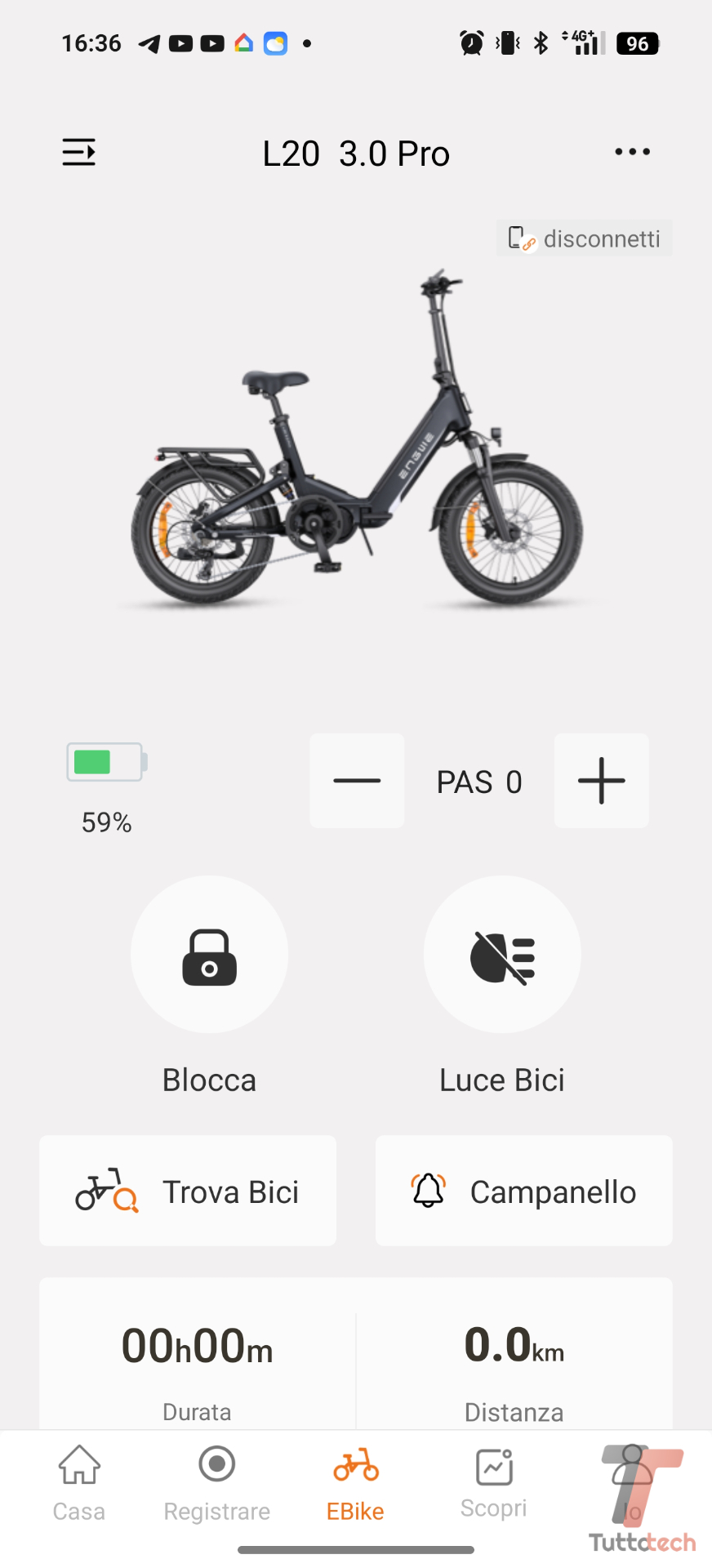 A rendere ancora più interessante l’esperienza d’uso c’è tutto il sistema IoT di Engwe, che include un modulo GPS con SIM dati integrata e una app dedicata. Grazie a questa piattaforma potete monitorare la posizione della bici, impostare un antifurto, creare una password di sblocco o anche semplicemente fare in modo che la bici si sblocchi automaticamente quando vi avvicinate con lo smartphone. Un vero tocco di tecnologia smart che impreziosisce ulteriormente il mezzo.