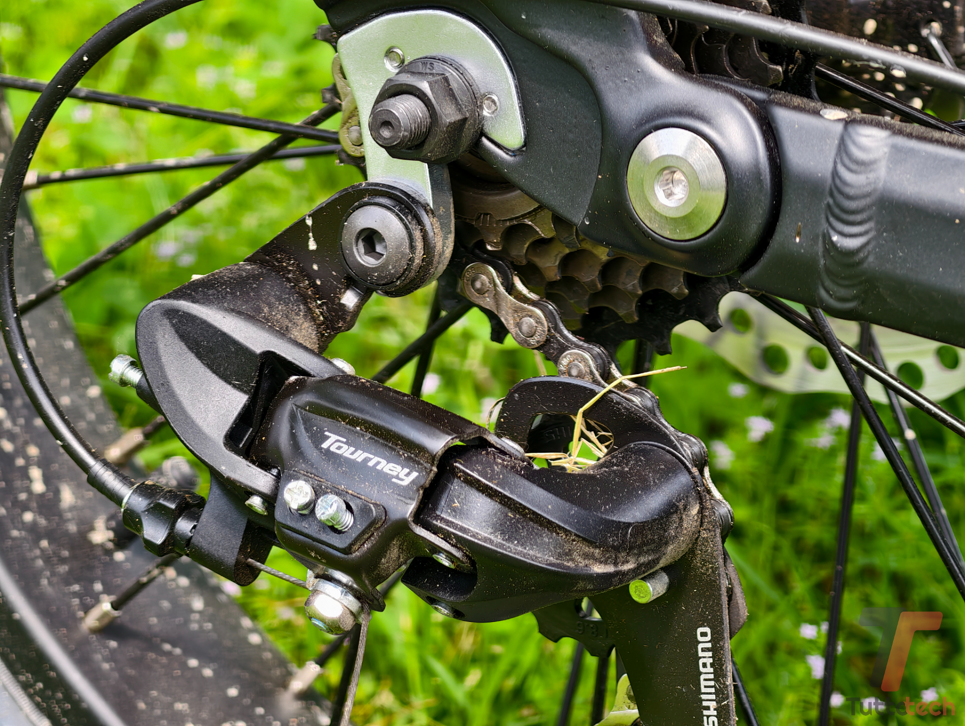 Per parlare della dotazione della bici partiamo dal vero protagonista: il motore centrale Mivice X700, di cui abbiamo già accennato nell’introduzione. Si tratta di un motore da 250W di potenza nominale con una coppia massima di 100Nm, davvero straordinaria per una bici relativamente economica come questa. Ci ha colpito fin dai primi chilometri ed è frutto del lavoro di un brand emergente che sta conquistando sempre più spazio, anche tra i costruttori occidentali più noti.