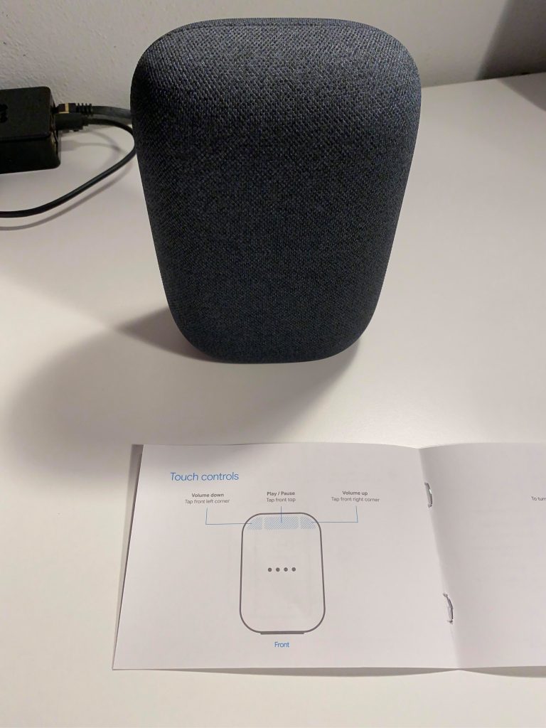 Il libretto delle istruzioni rivela che i controlli touch di Nest Audio sono disposti frontalmente nella metà superiore, con i controlli del volume che sono posizionati agli angoli e il pulsante play / pausa che trova spazio tra i due, mentre l’interruttore per silenziare il microfono si trova sul retro.