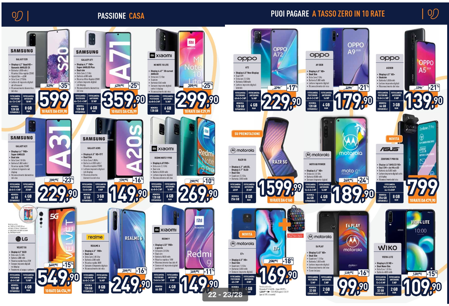 Il volantino di Unieuro, valido dal 25 settembre all’8 ottobre, include una bella selezione di smartphone Android, su cui ci saranno sconti tra il 10% e il 30% sul prezzo di listino e la possibilità di chiedere un finanziamento in 20 rate a tasso zero (TAN 0%, Taeg 0%). Gli smartphone non sono tuttavia – come già anticipato – gli unici prodotti interessanti in promo, per cui abbiamo deciso di segnalarvi di seguito le migliori offerte anche su alcune smart TV, fotocamere, notebook e tablet.