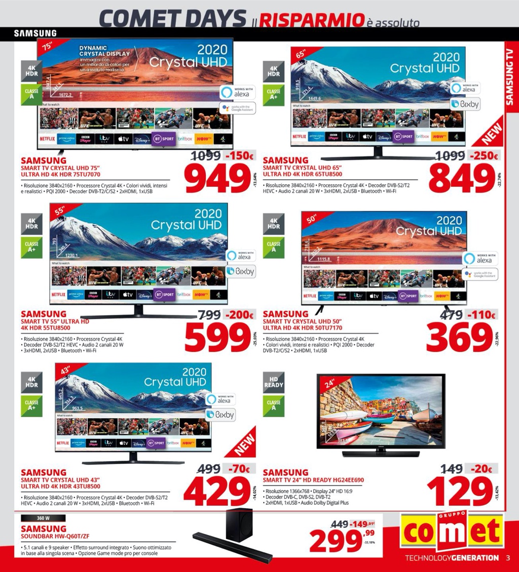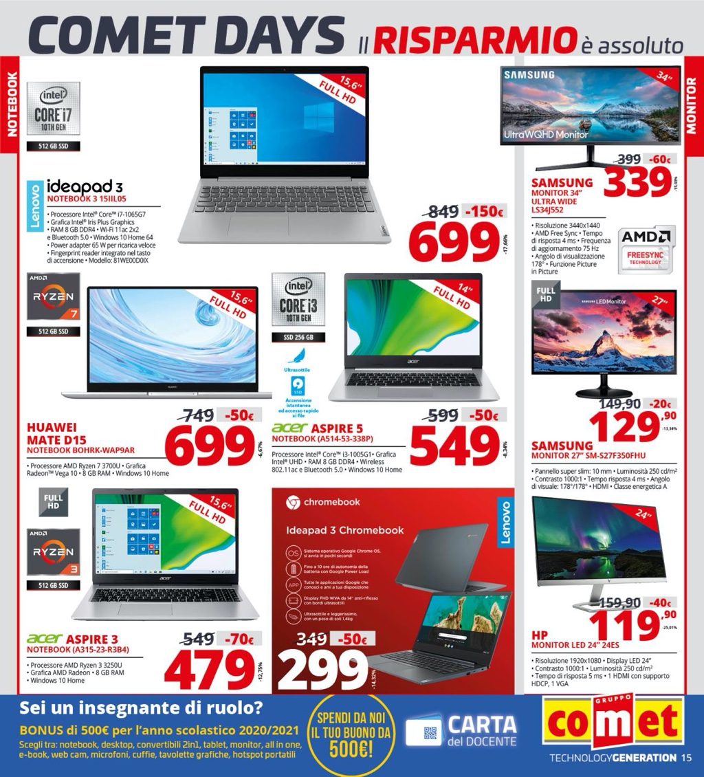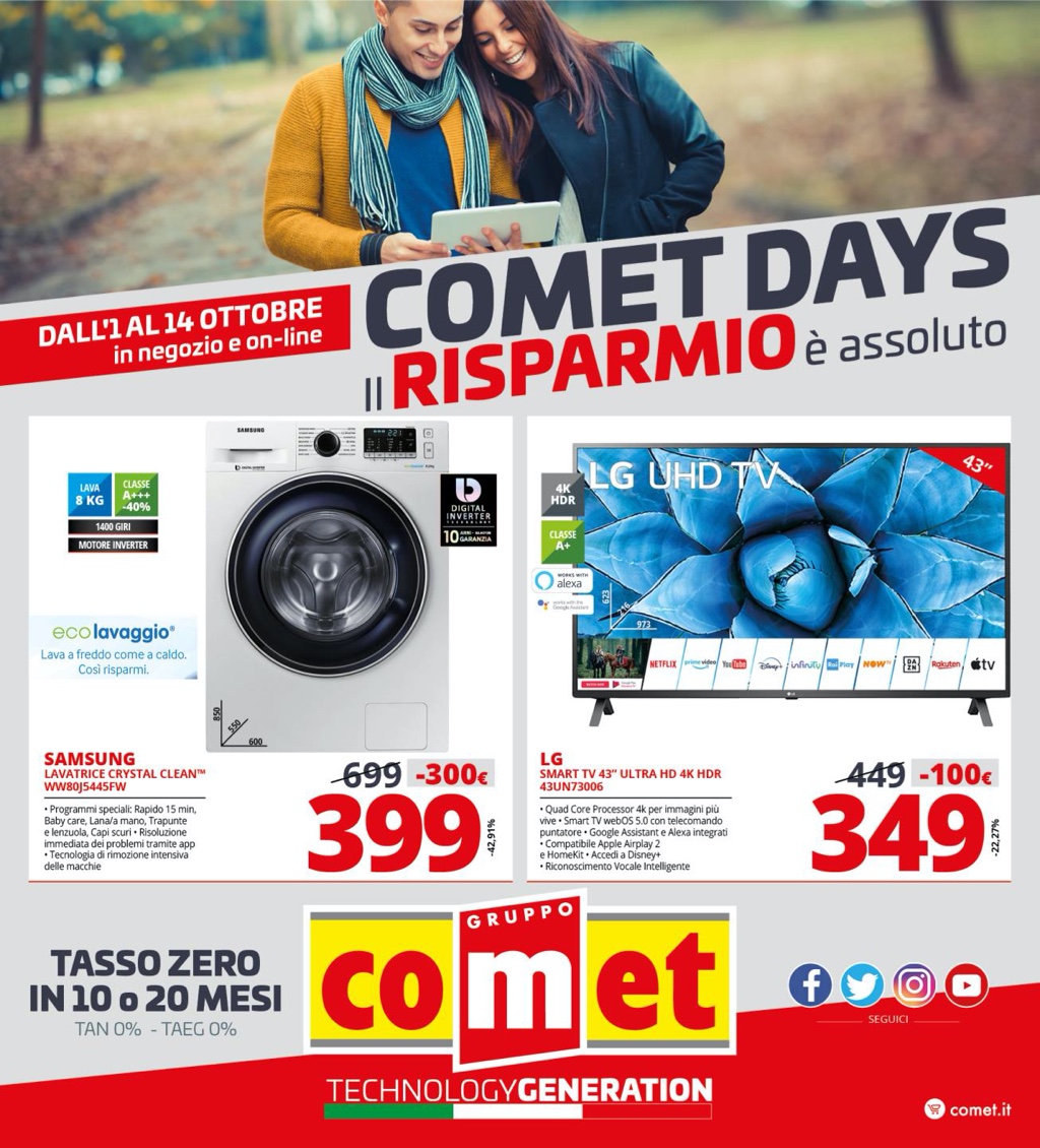 Sono questi giorni ricchi di offerte in casa Comet: è stato infatti lanciato il nuovo volantino Comet Days – Il risparmio è assoluto, che offre sconti fino al 40%, oltre al finanziamento a tasso zero, su una selezione di prodotti d’elettronica, tra cui non mancano TV, notebook, piccoli e grandi elettrodomestici.