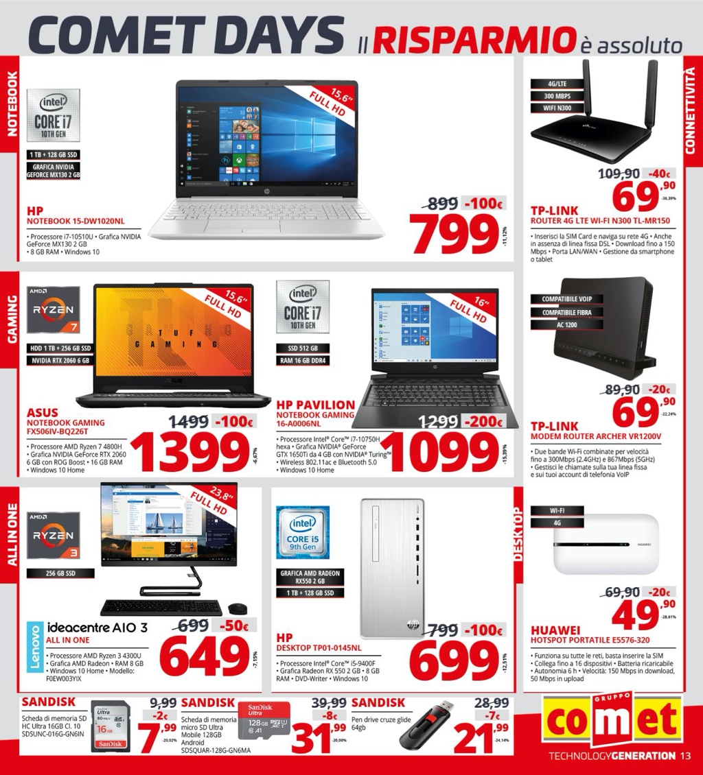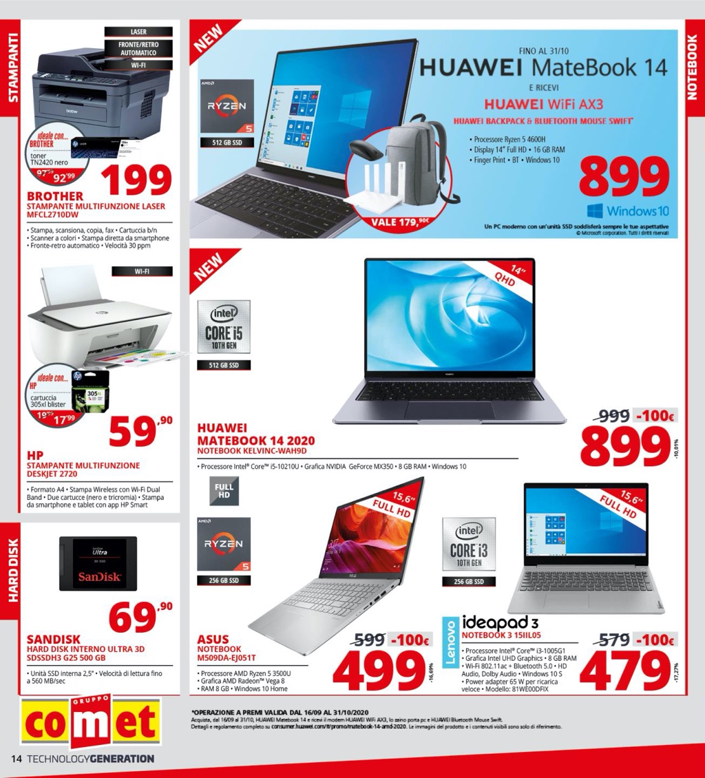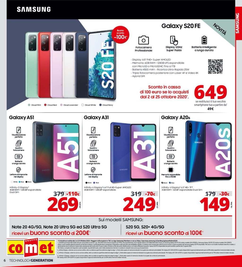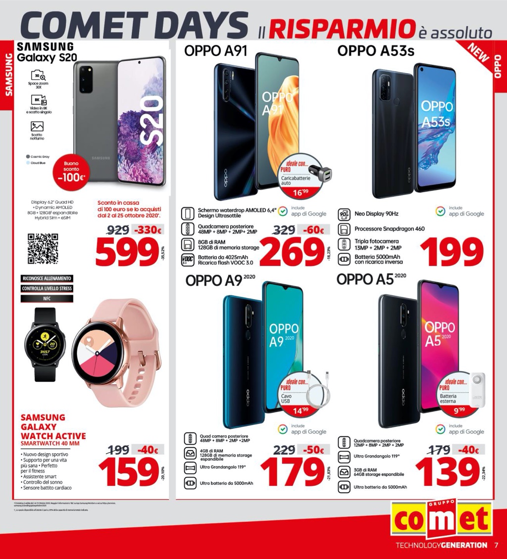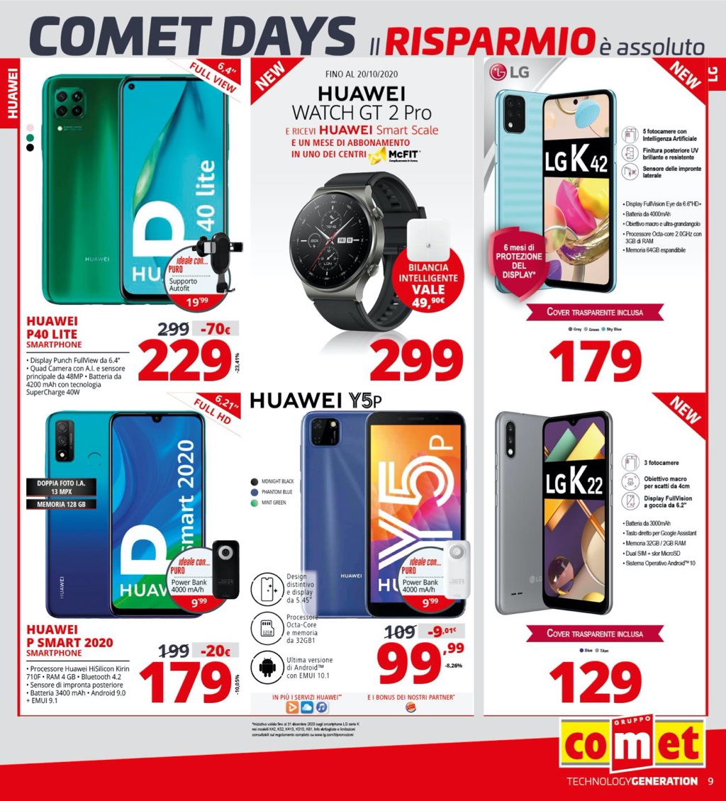 Il nuovo volantino Comet, valido anche online fino al 14 ottobre 2020, include una vasta selezione di smartphone Android, su cui ci saranno sconti fino al 60% sul prezzo di listino, nonché la possibilità di chiedere un finanziamento in 20 rate a tasso zero (TAN 0%, Taeg 0%). Gli smartphone non sono però, come abbiamo già anticipato, gli unici prodotti in offerta, per cui abbiamo deciso di raccogliere a seguire anche le migliori offerte su smart TV, fotocamere, PC, notebook e wearable.