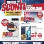 Grazie al nuovo volantino Trony sarà possibile acquistare prodotti a partire da 299 euro (e fino a 5000) approfittando del tasso zero, con TAN e TAEG 0%, e del pagamento rateale in 20 mesi, con costi accessori azzerati. Come anticipato le offerte toccano smartphone, tablet, PC, smartwatch, smartband e smart TV: andiamo a scoprire gli sconti migliori tra le proposte Trony.
